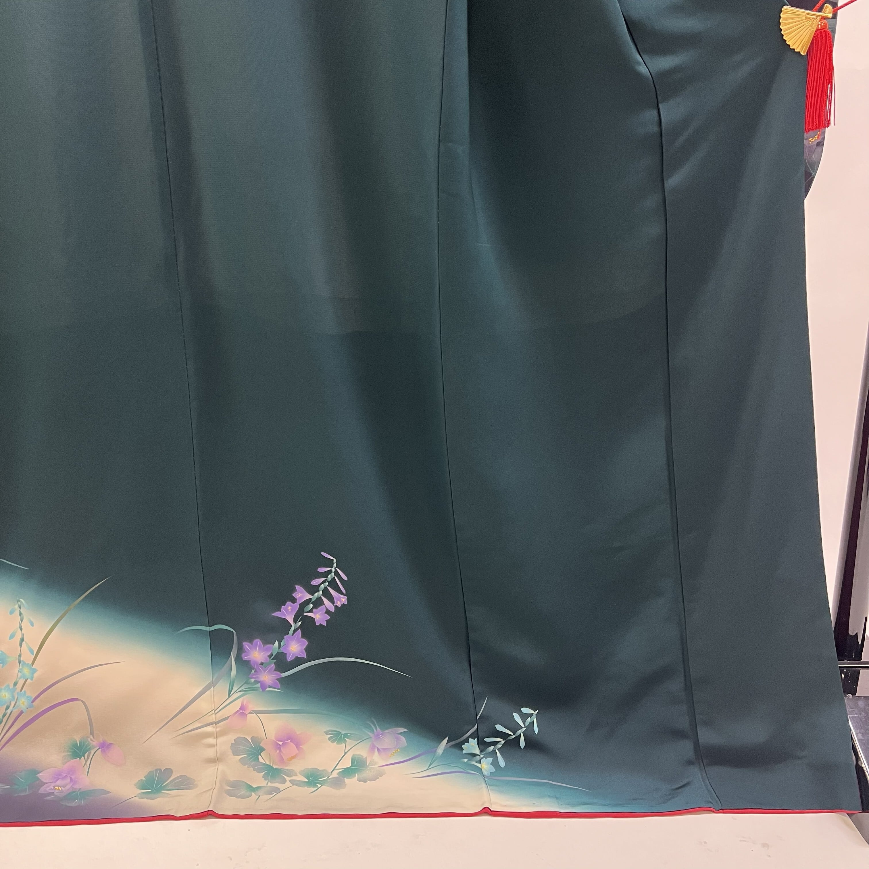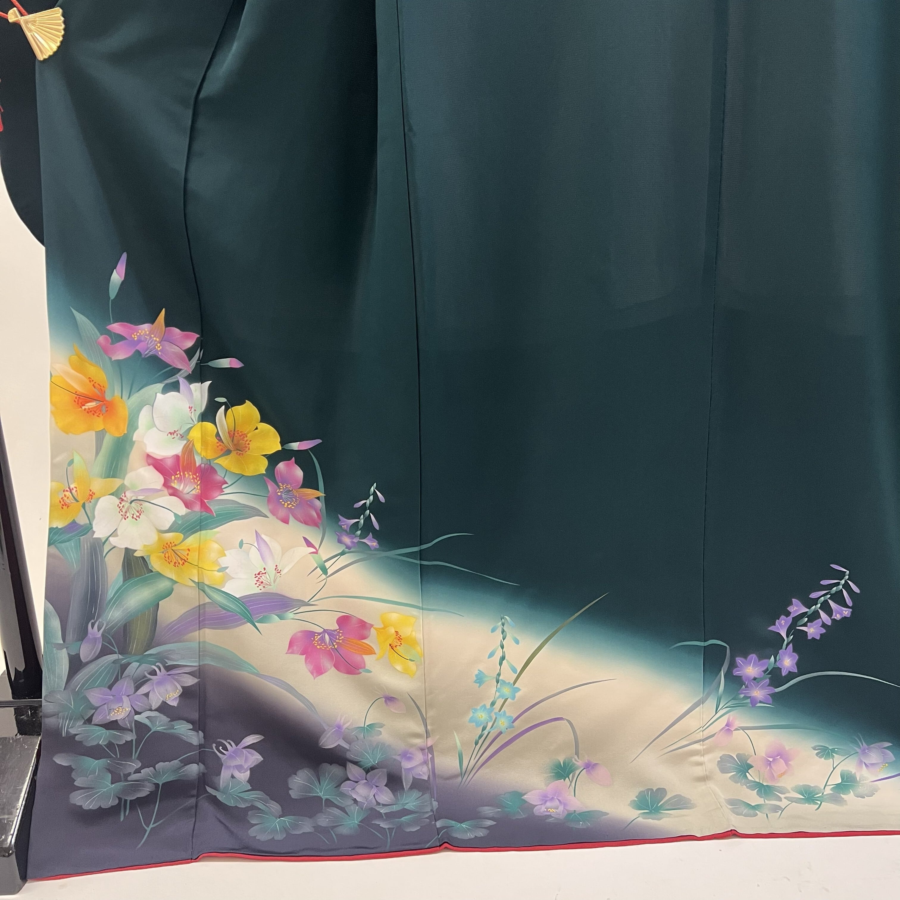 中振袖 振袖 正絹 中古品 緑 緑色 3S874 HACX742000