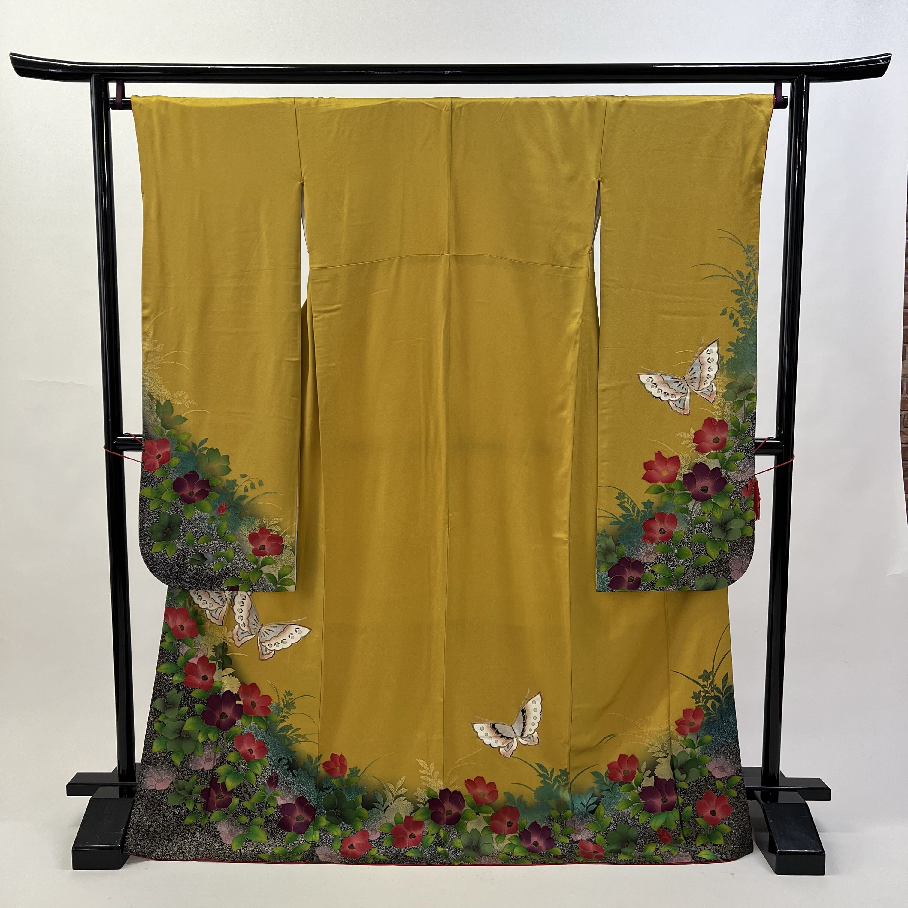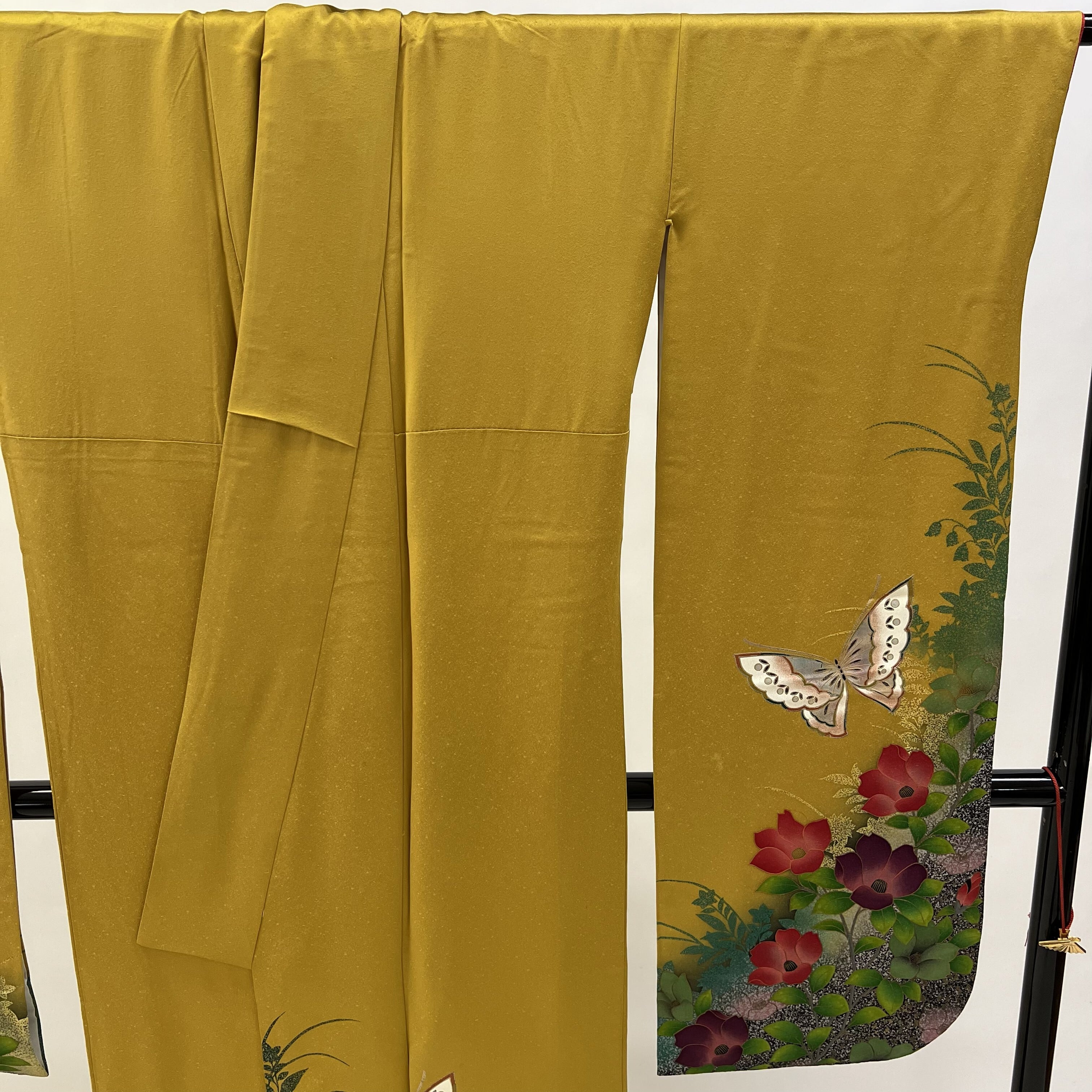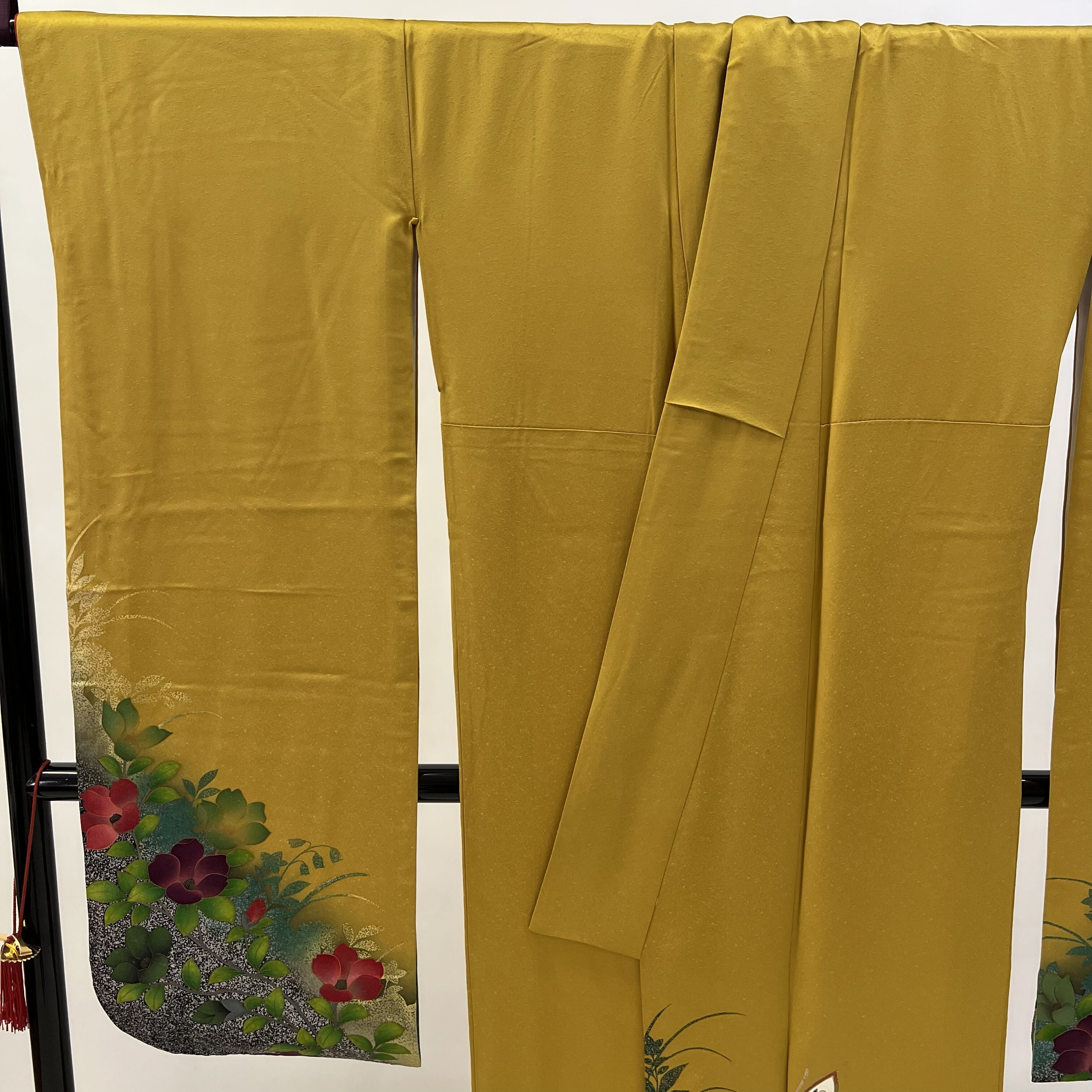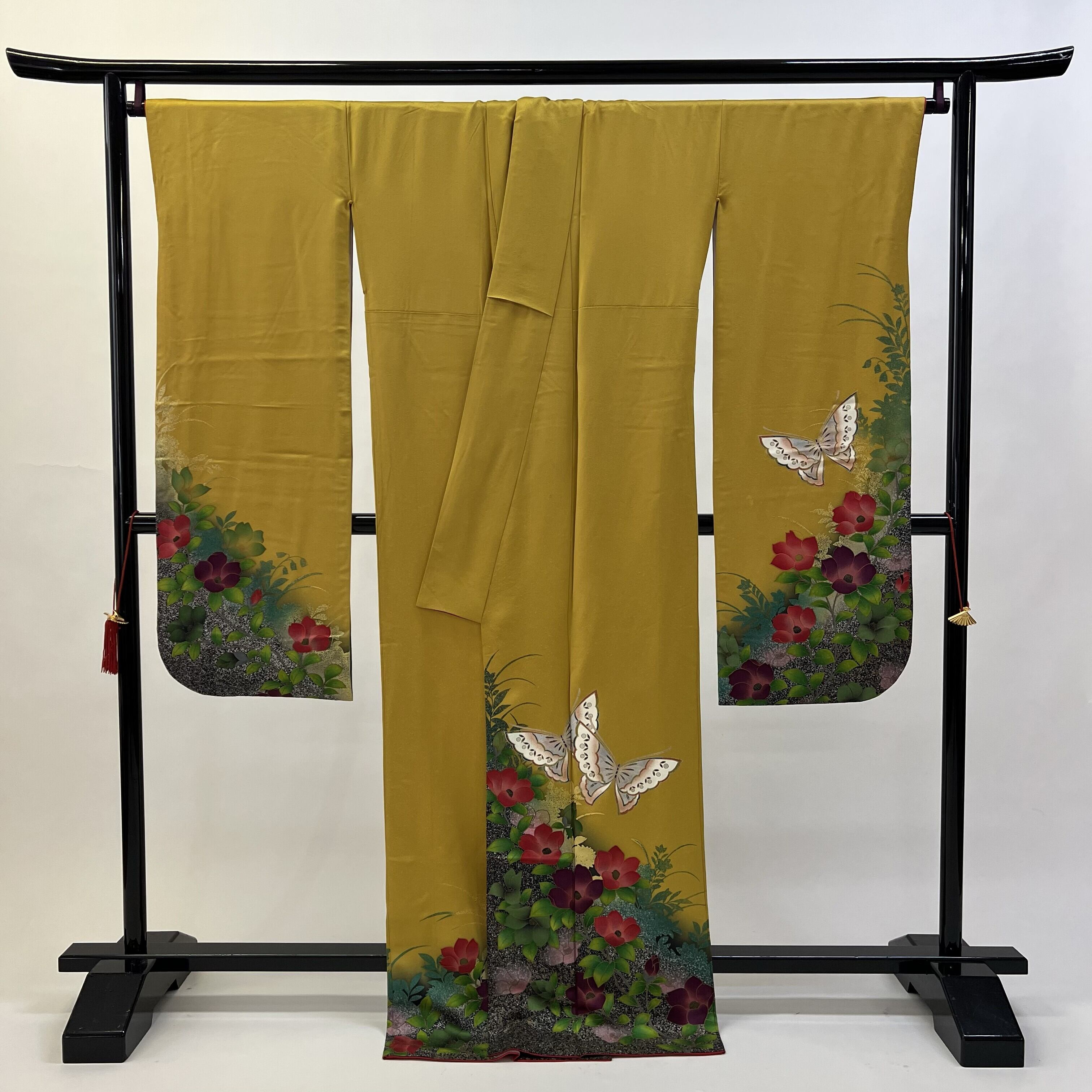 中振袖 振袖 正絹 中古品 黄色 からし色 3S313A HZYA006