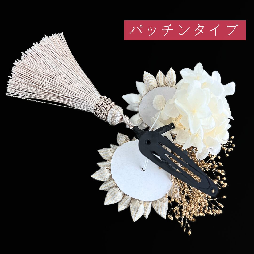 【白 花 髪飾り 2】七五三 3歳 三歳 5歳 五歳 7歳 七歳 卒園式 卒業式 成人式 振袖 訪問着 和装 着物 袴 浴衣 ゆかた 白色 ゴールド ベージュ 花飾り パッチンピン パッチン留め 髪留め つまみ細工 タッセル 子供 キッズ HCJA473