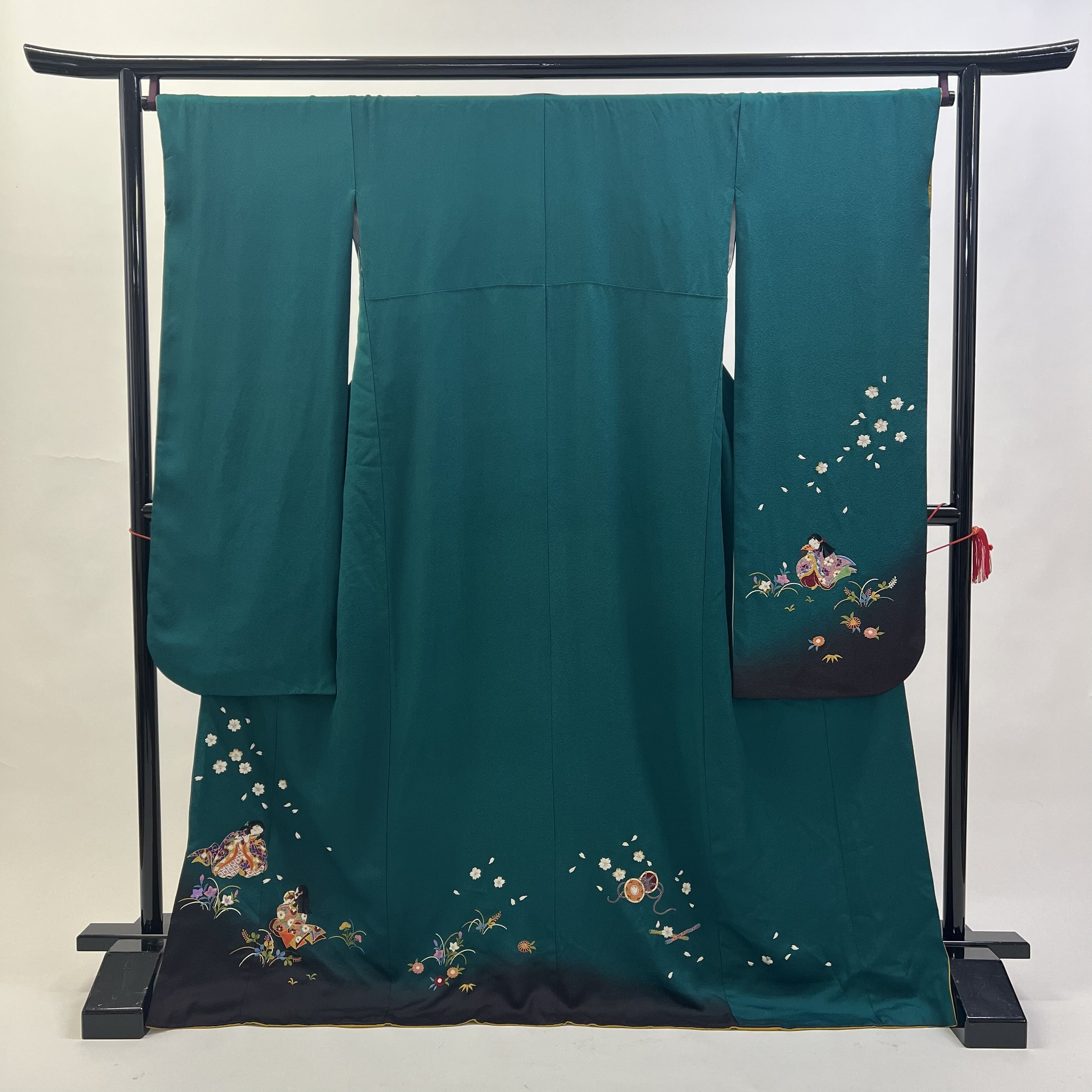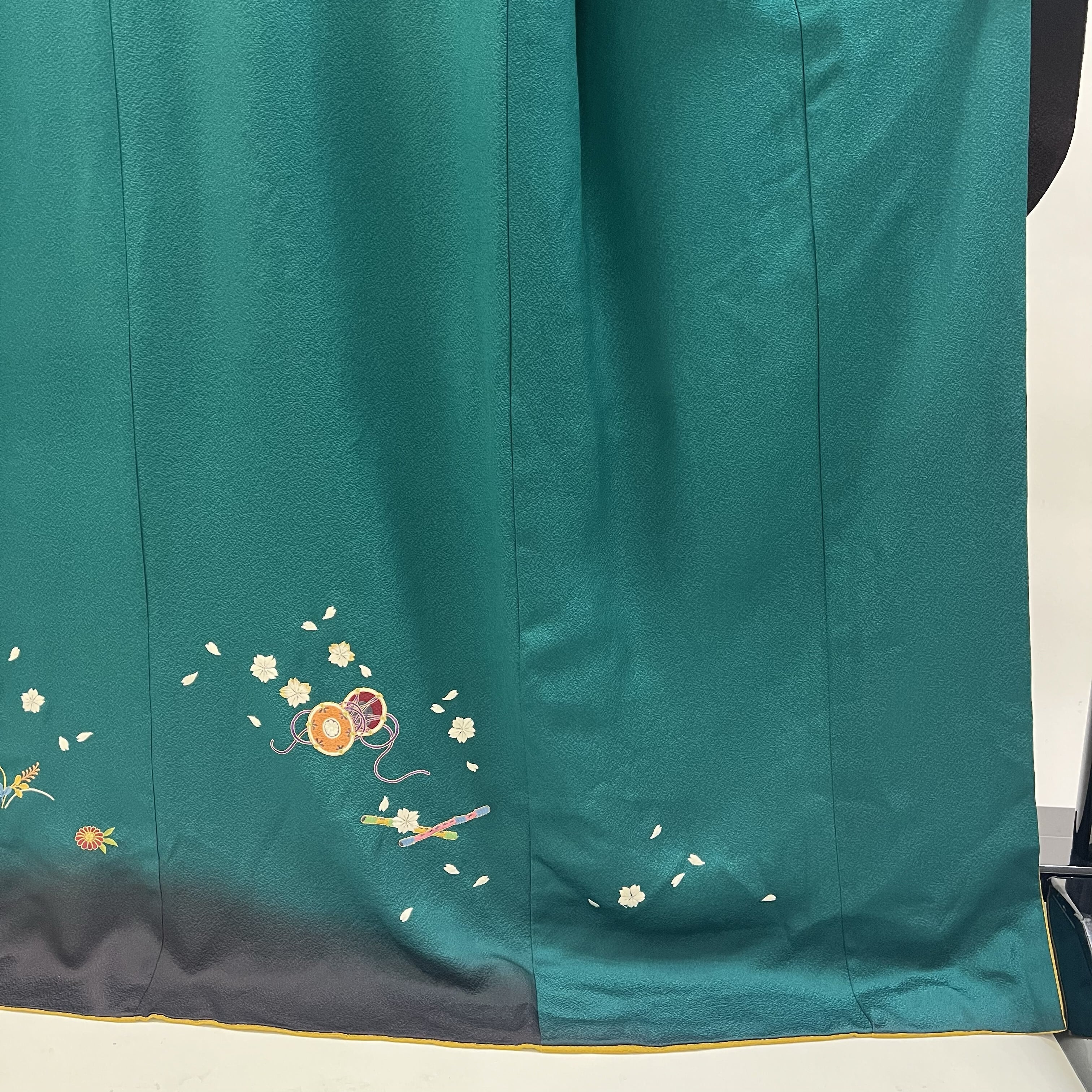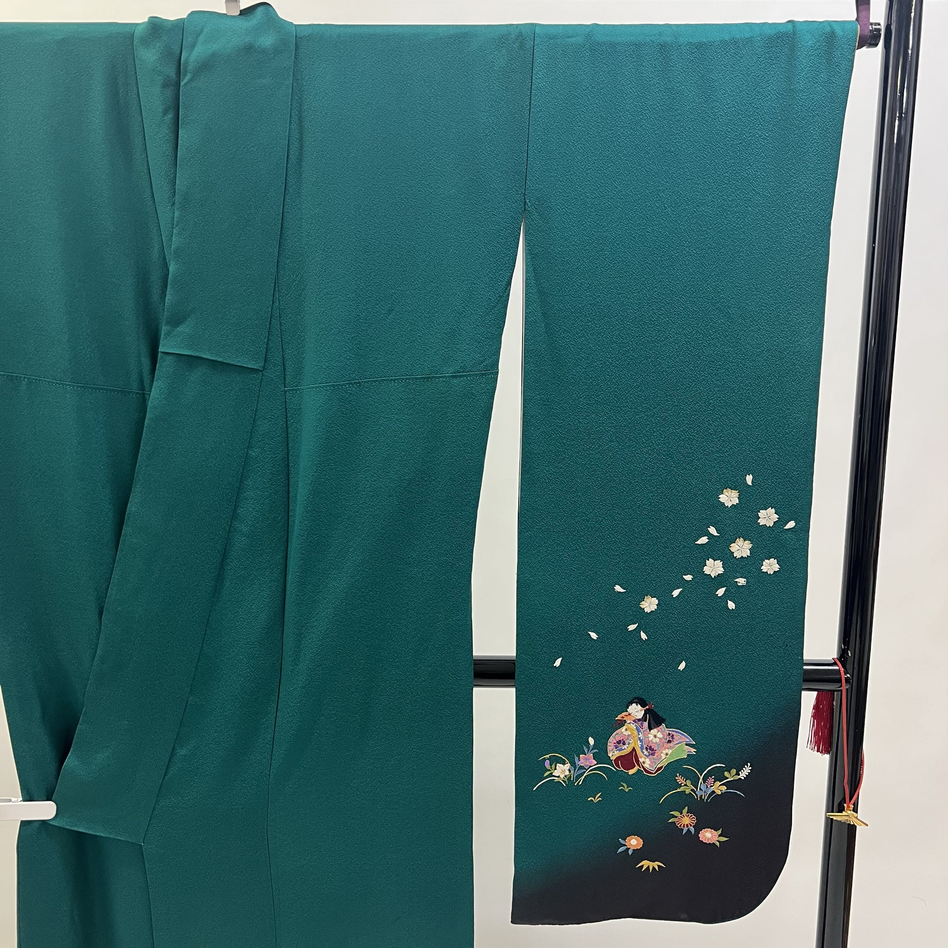中振袖 振袖 正絹 中古品 緑 緑色 3S896 HZYA004
