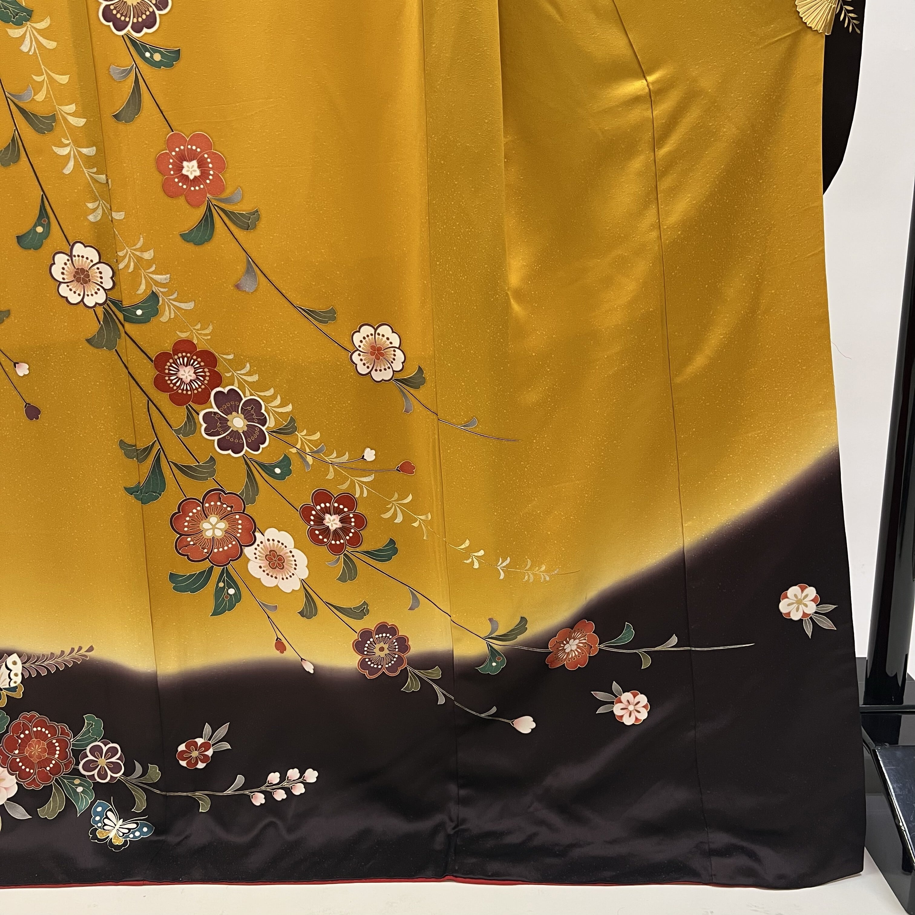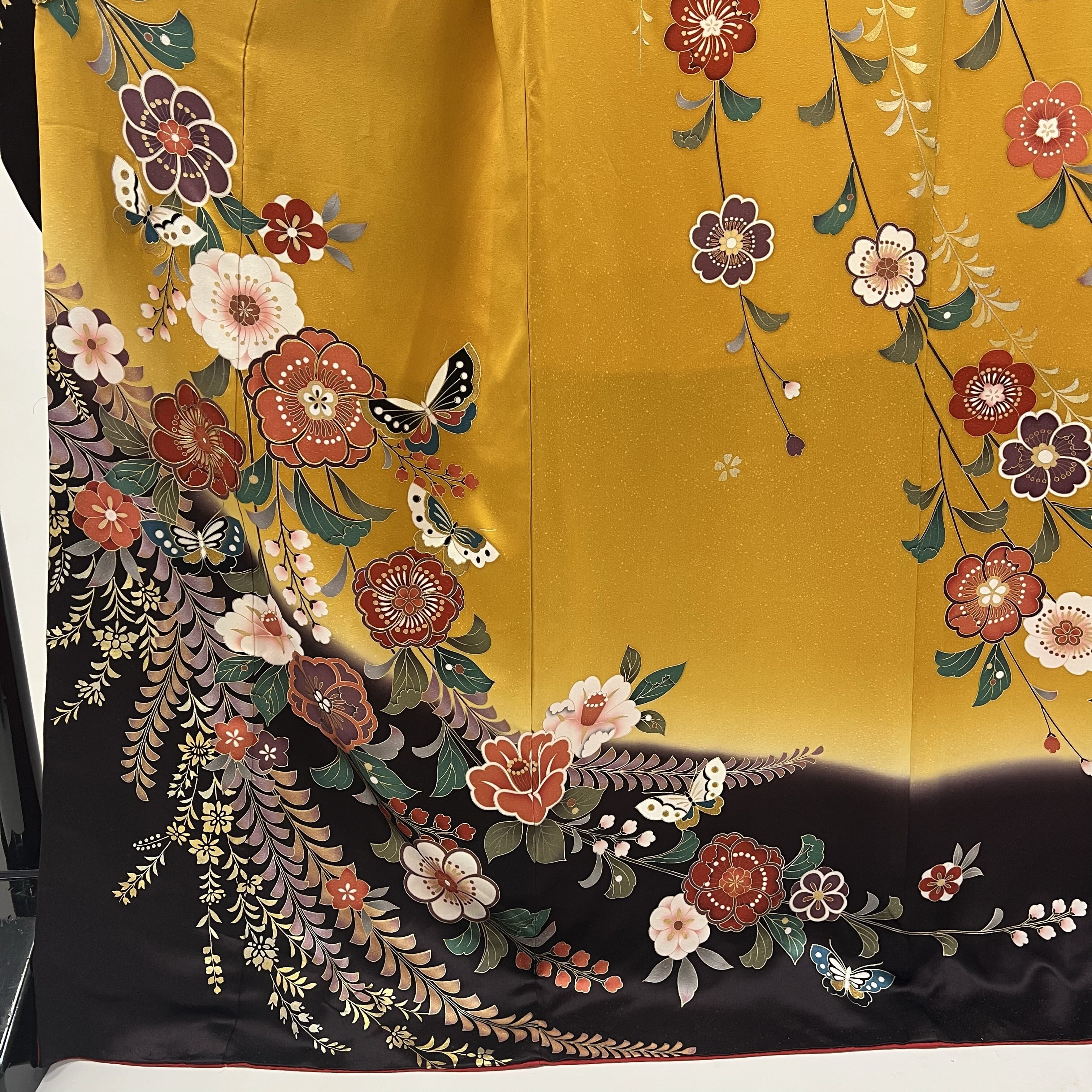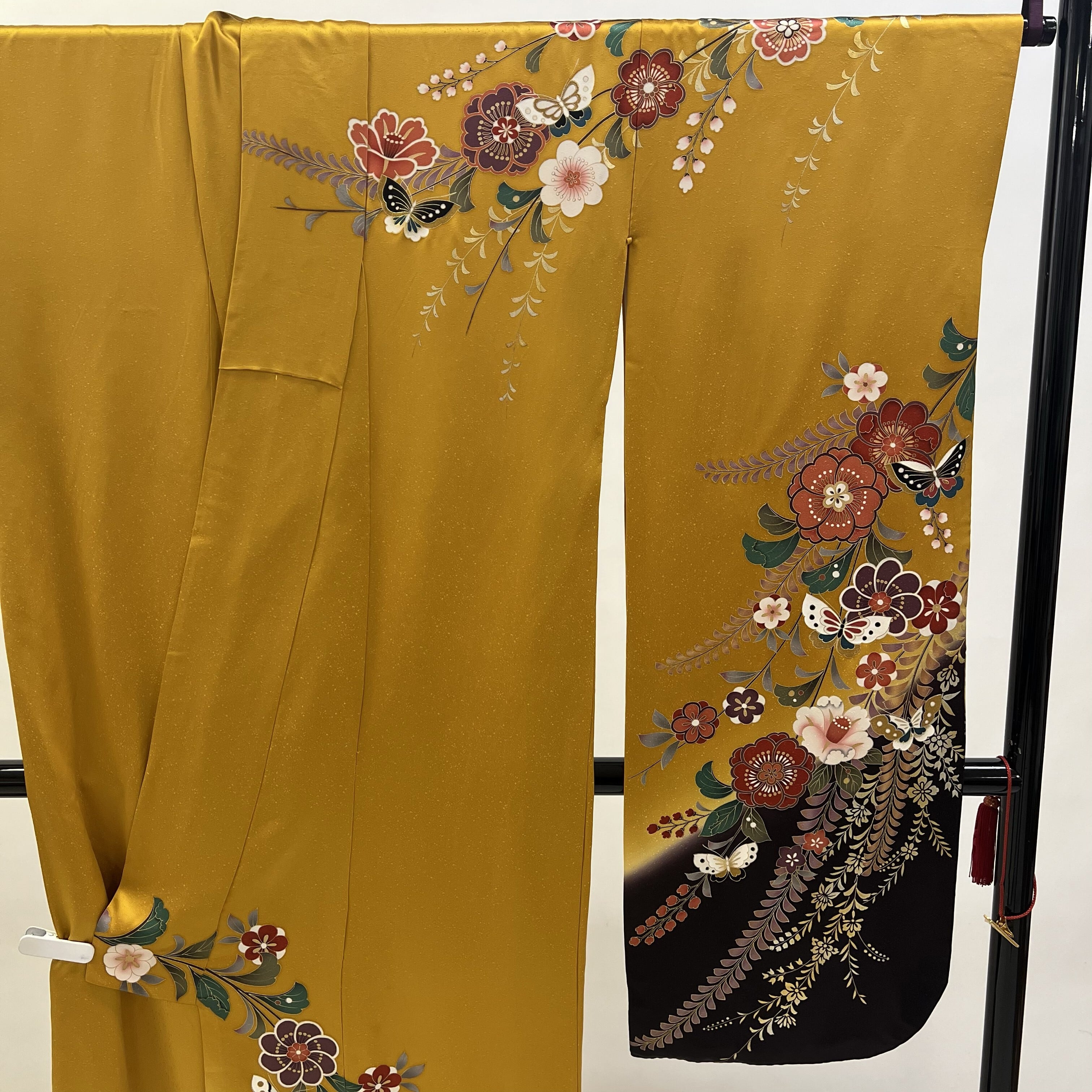中振袖 振袖 正絹 中古品 黄色 からし色 3S553 HZYA002