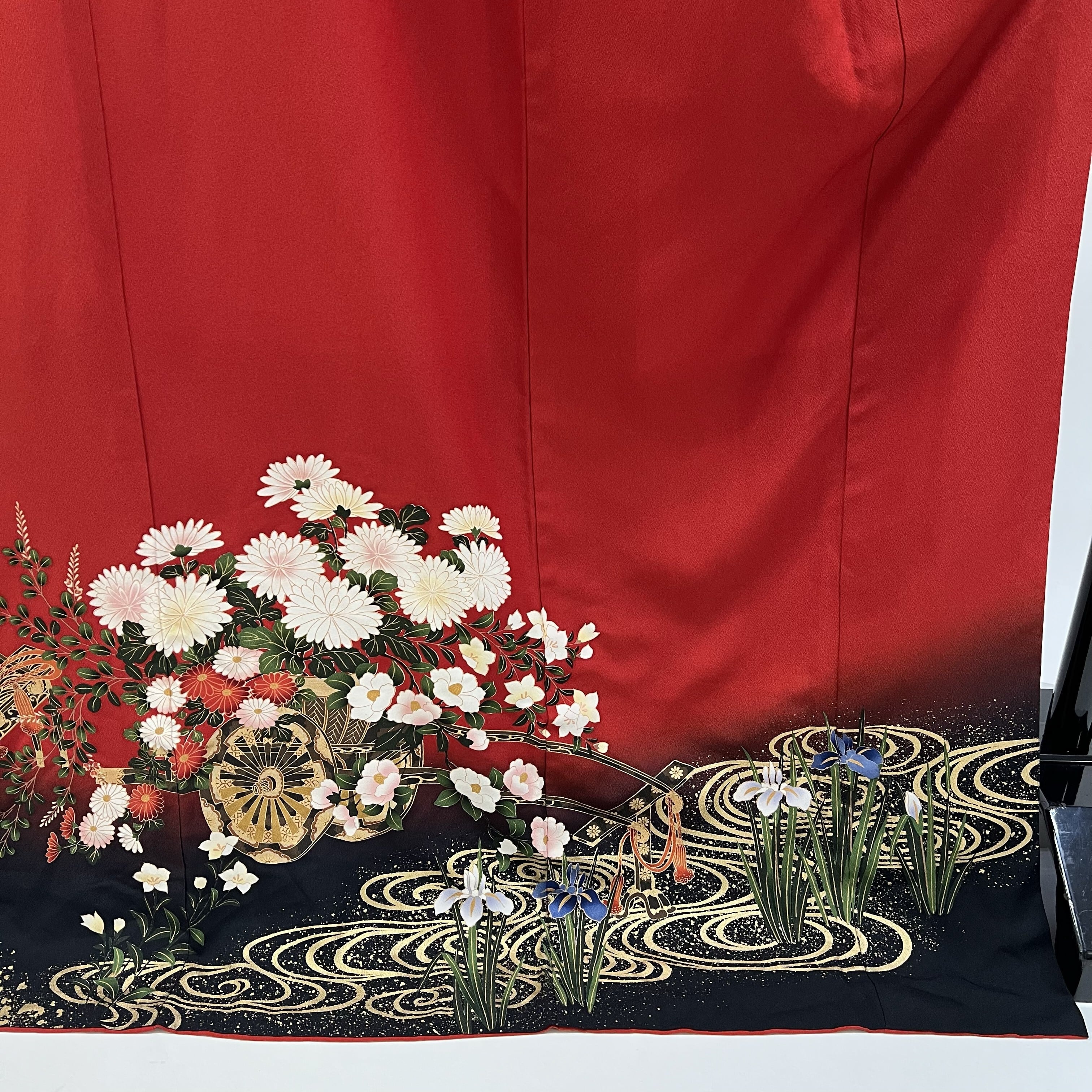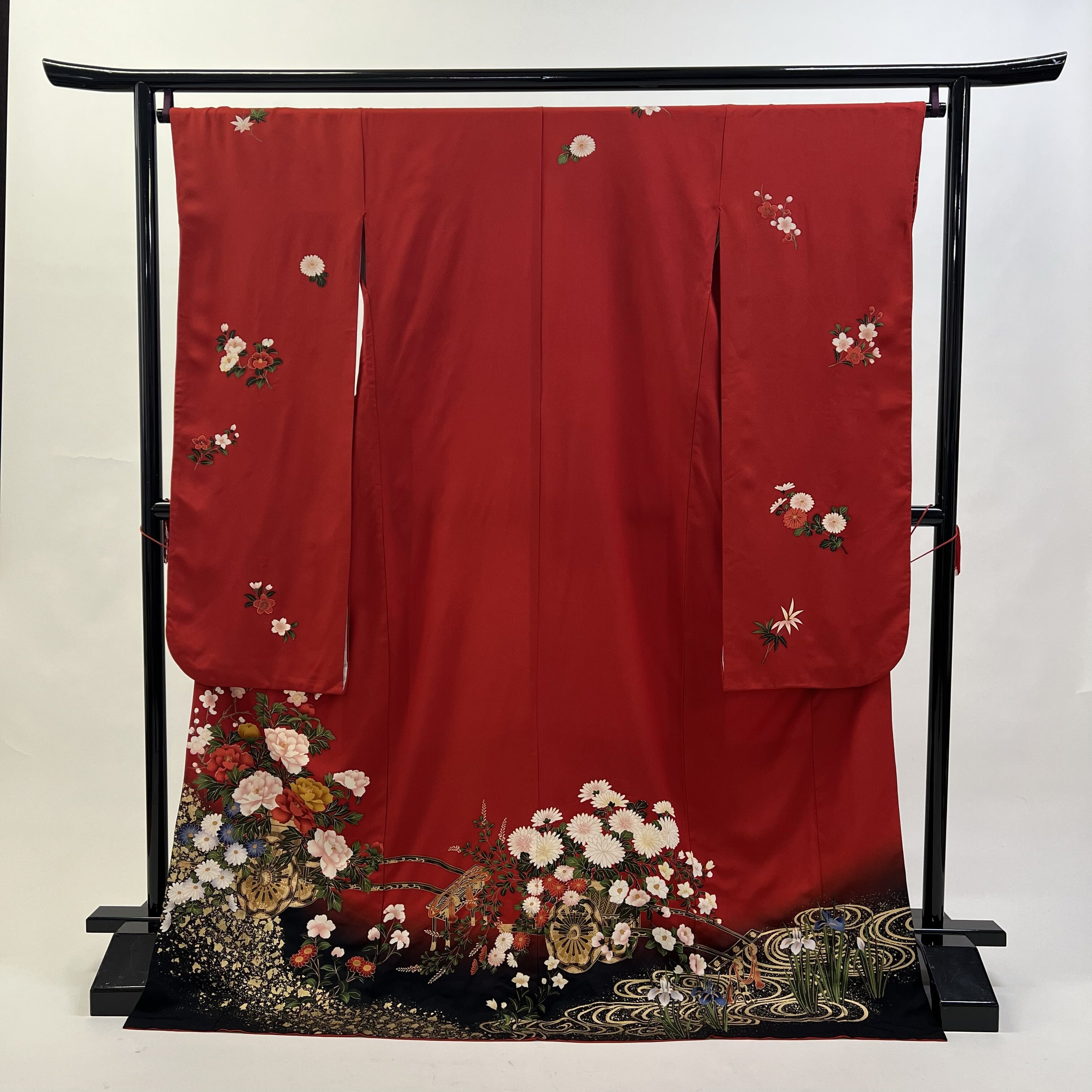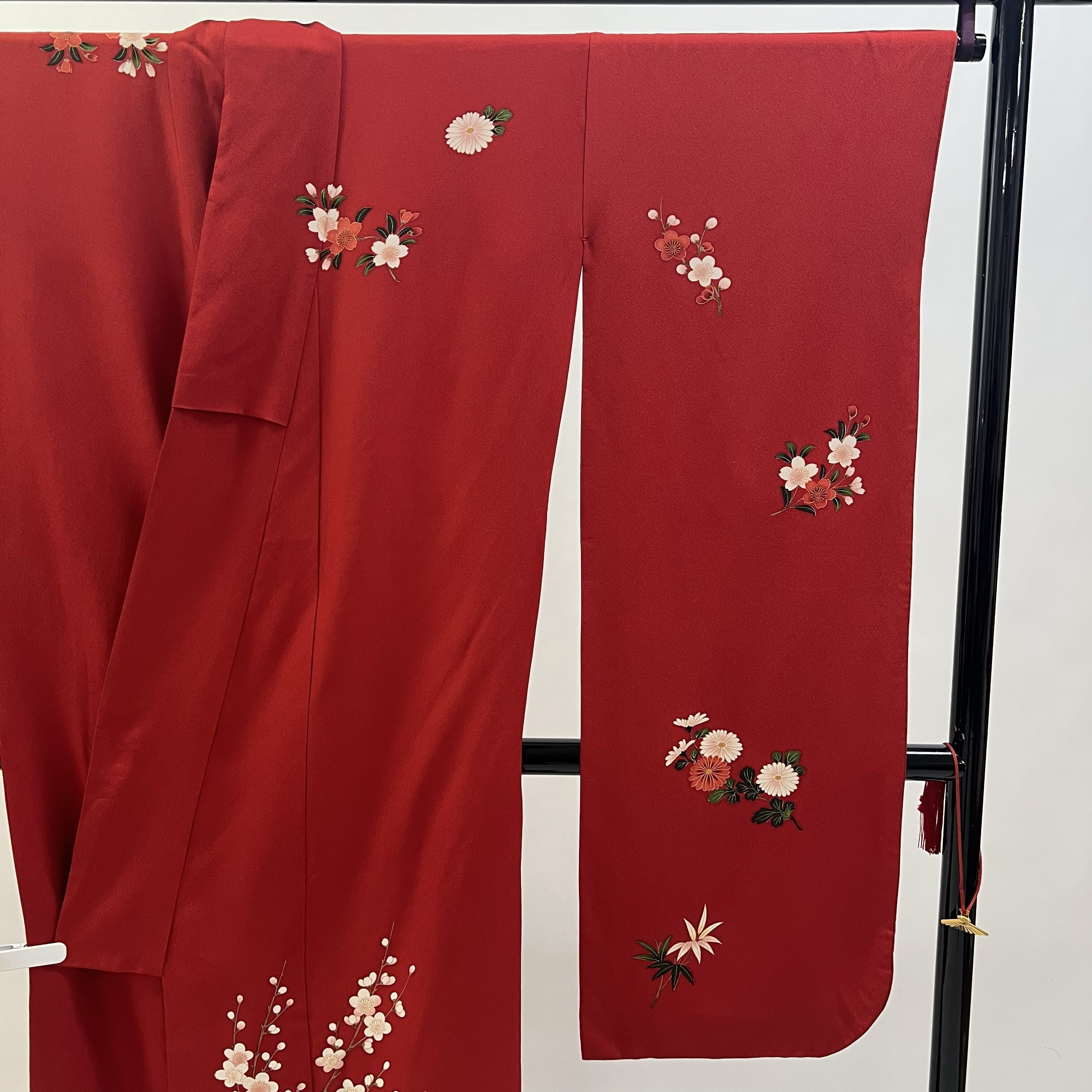中振袖 振袖 正絹 中古品 赤 赤色 3S568 HZYA003
