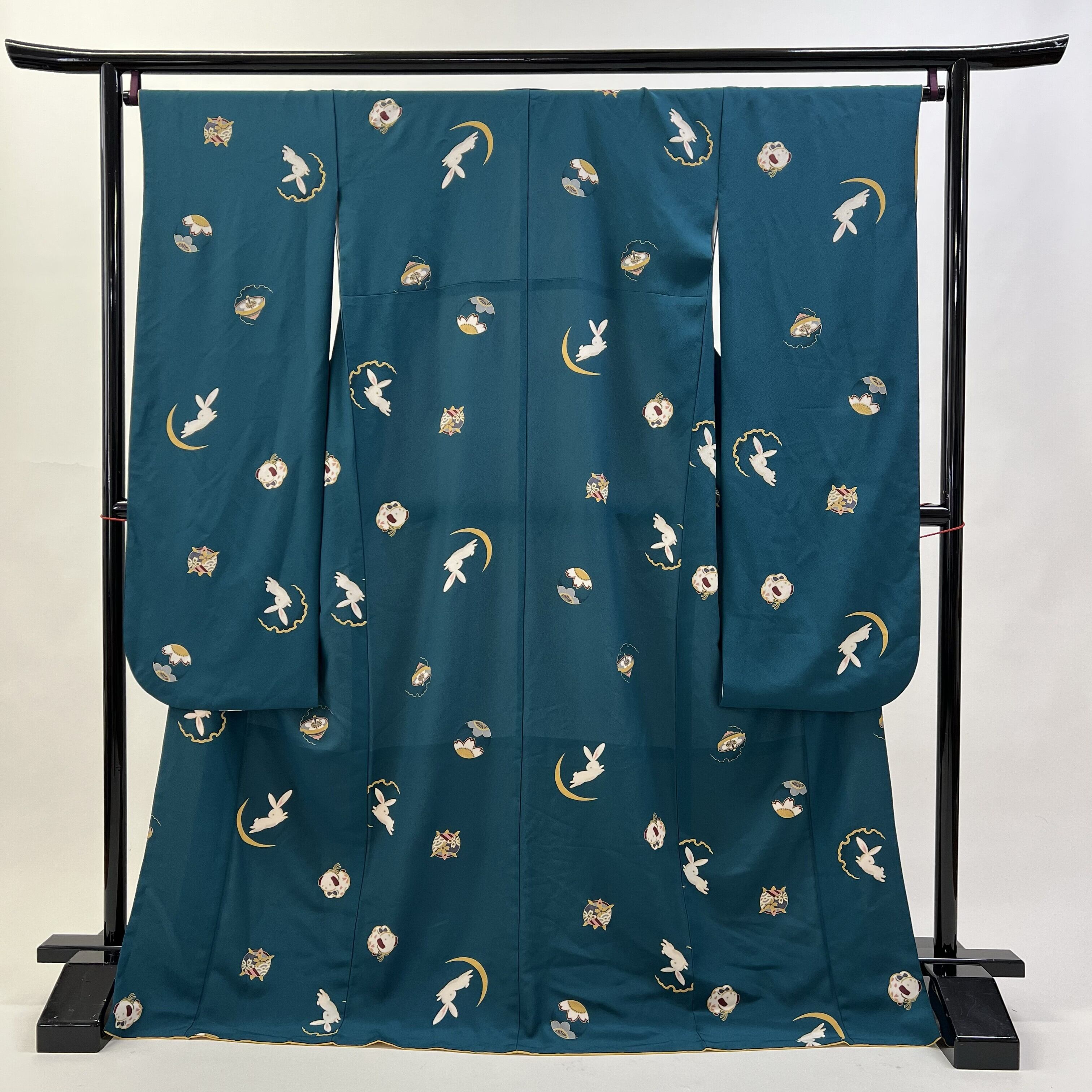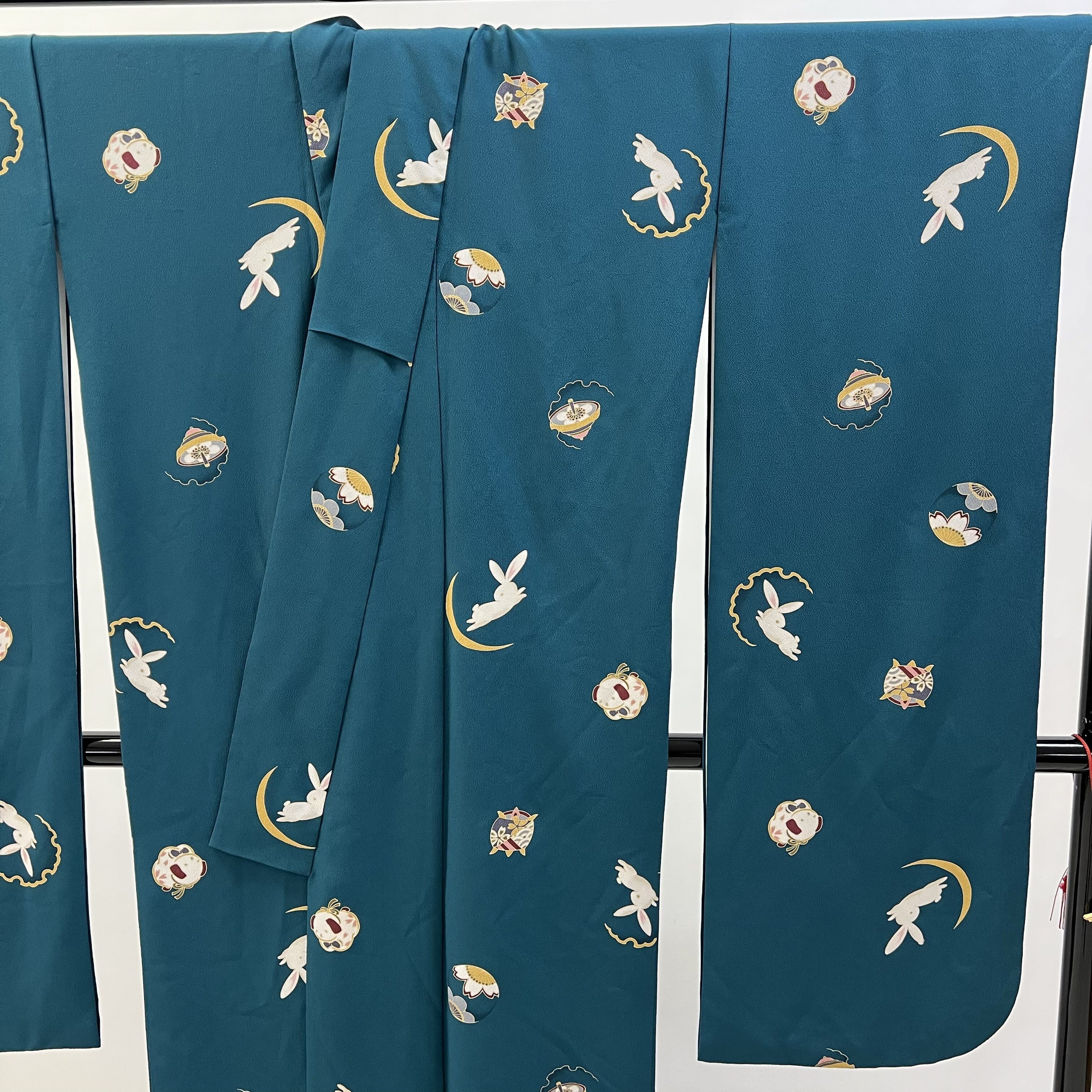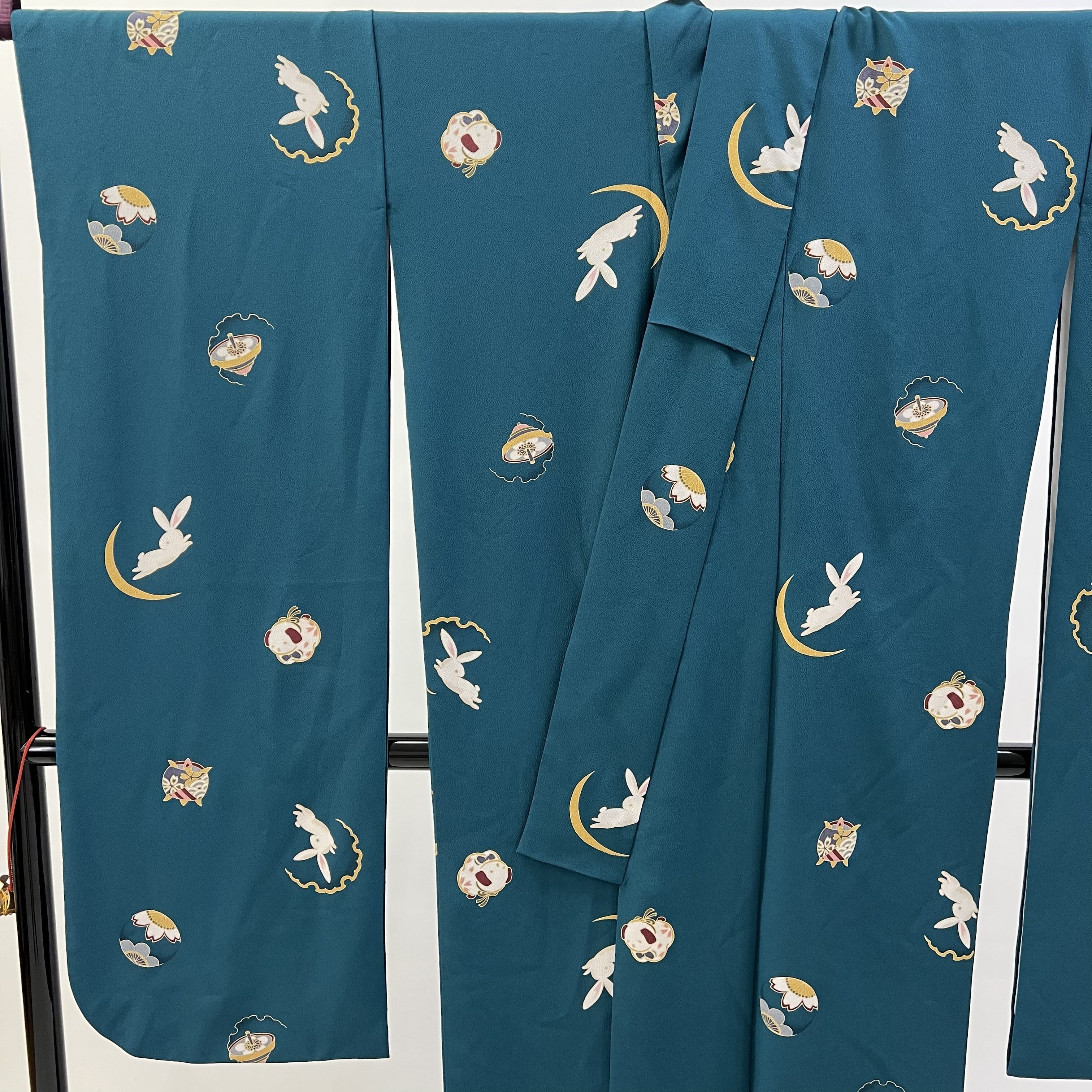 中振袖 振袖 正絹 中古品 緑 緑色 HZYA009