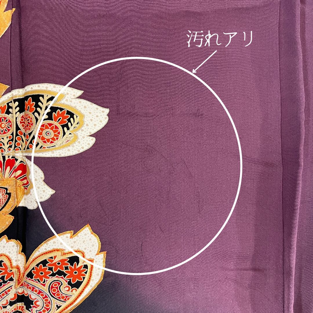 中振袖 振袖 正絹 中古品 紫 紫色 あずき色 小豆色 3S684 HAC0009