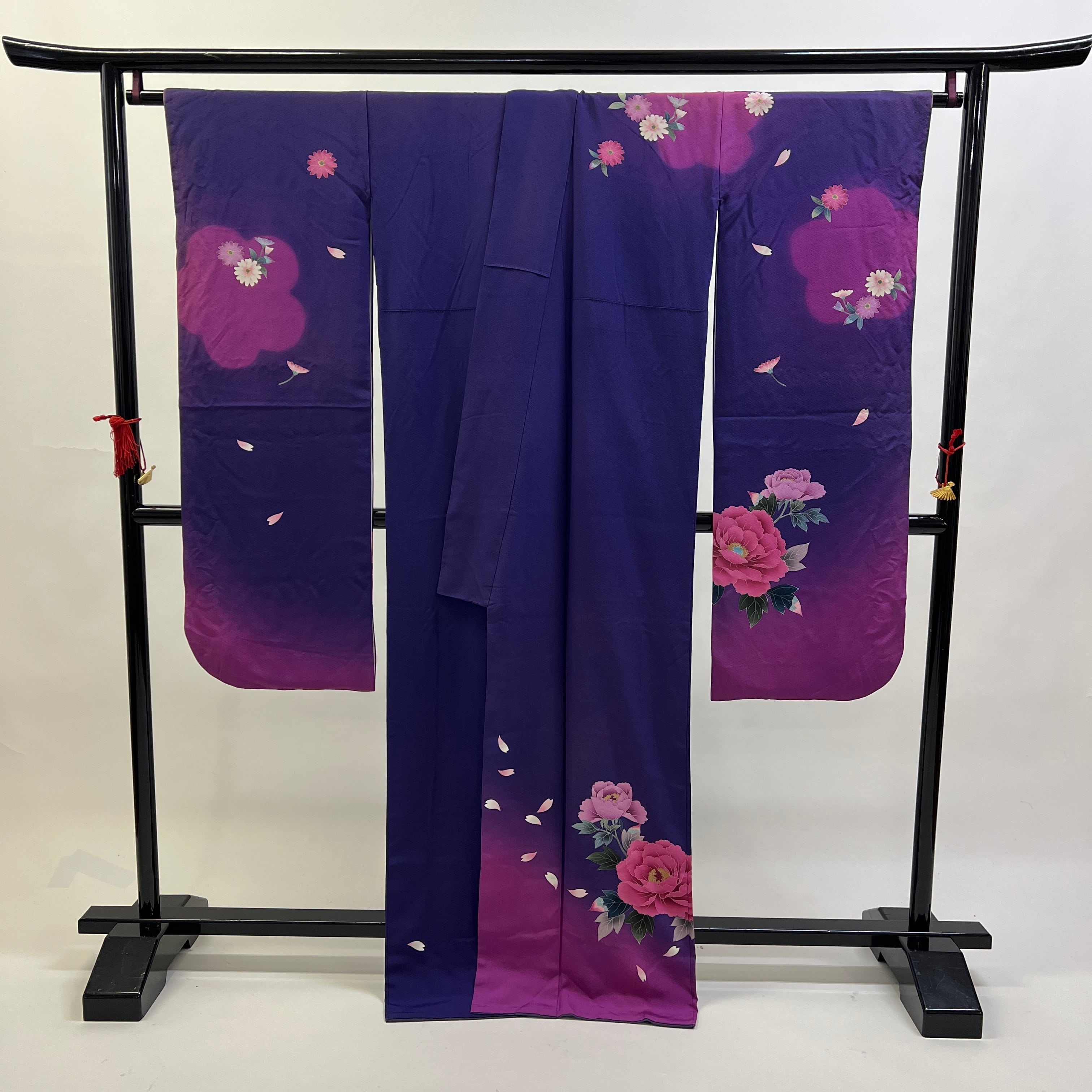 ・正絹 中振袖 振袖 花紺 牡丹花びら 3S952 HACX763