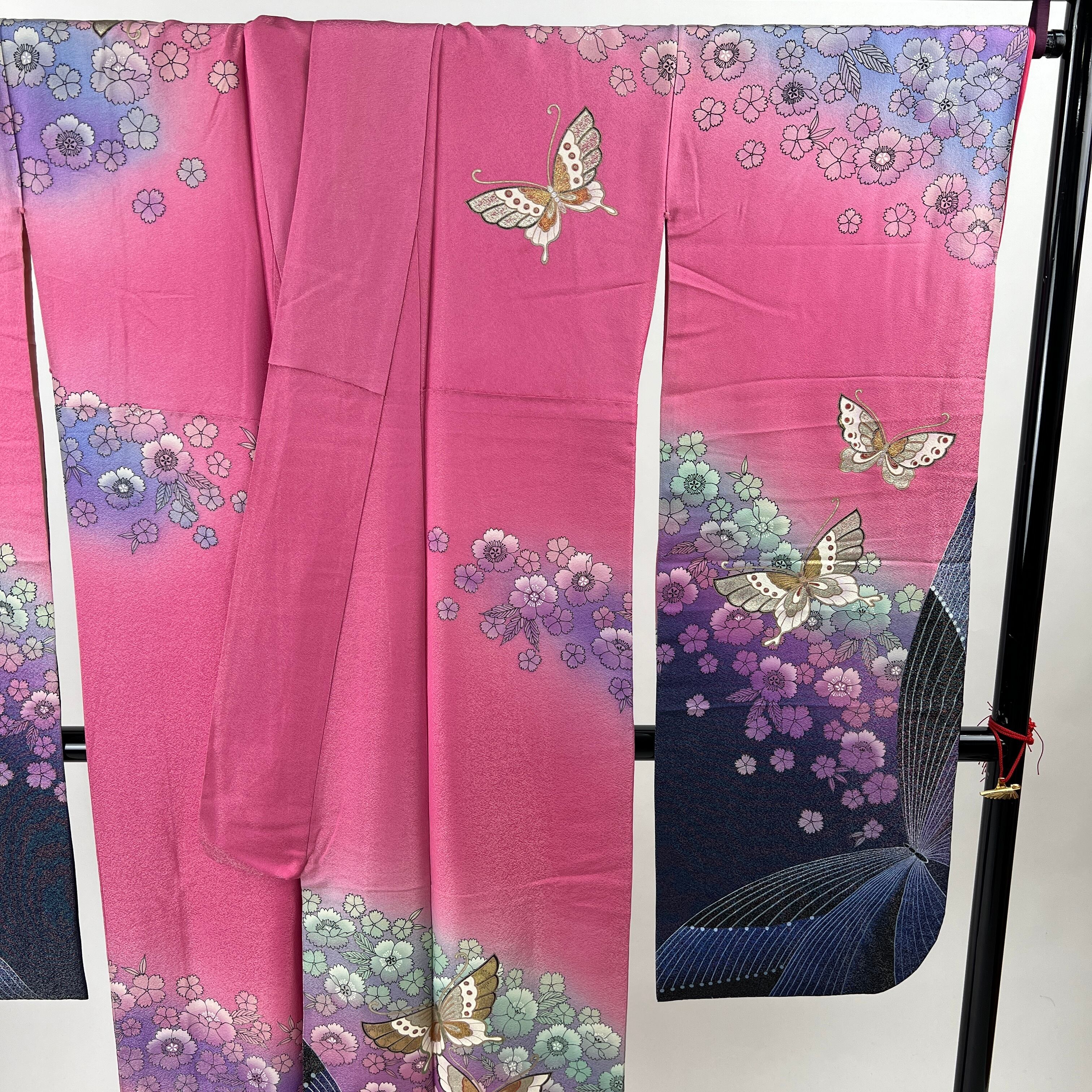 ・正絹 中振袖 振袖 ピンクラメ織 線書 蝶 3S179 HACX616000