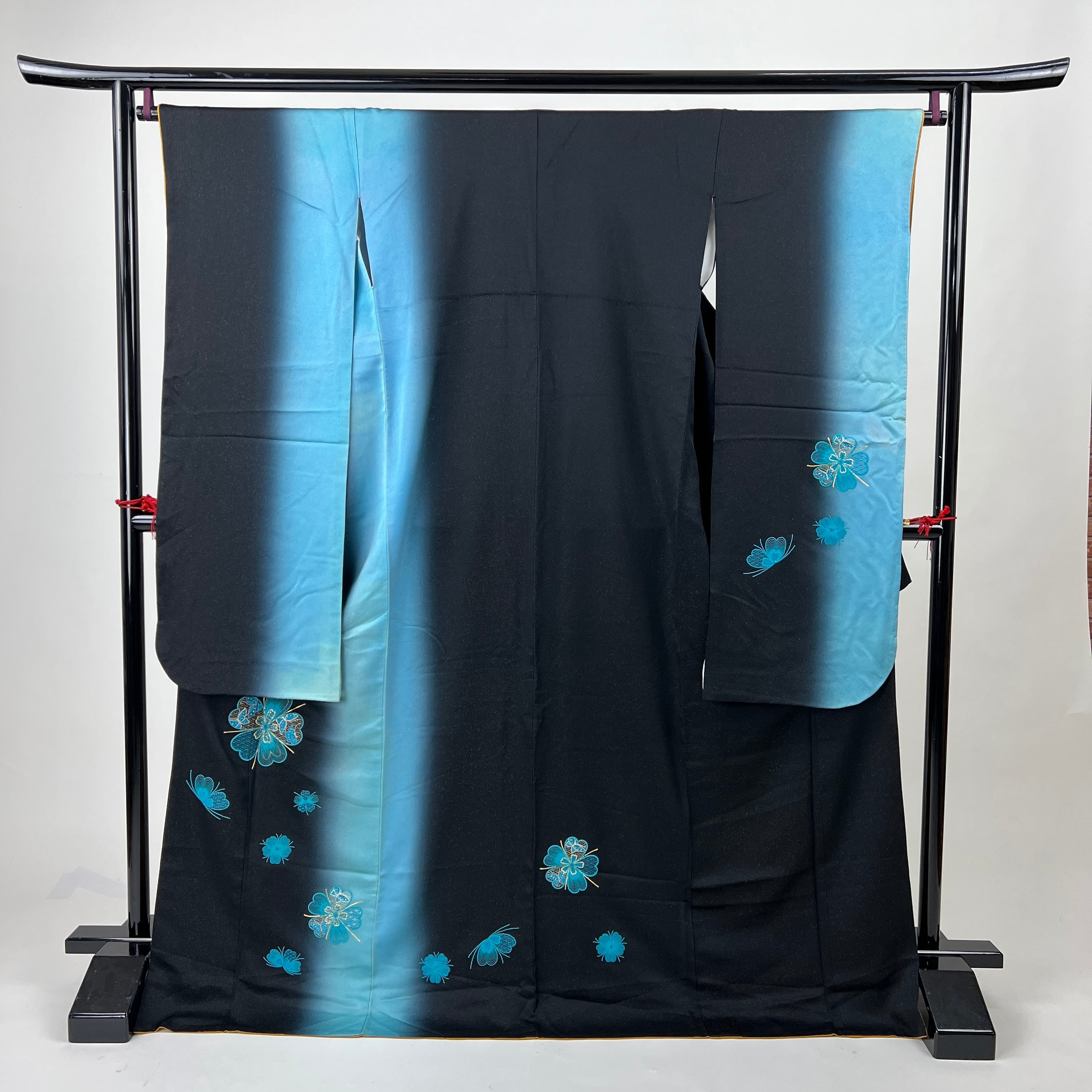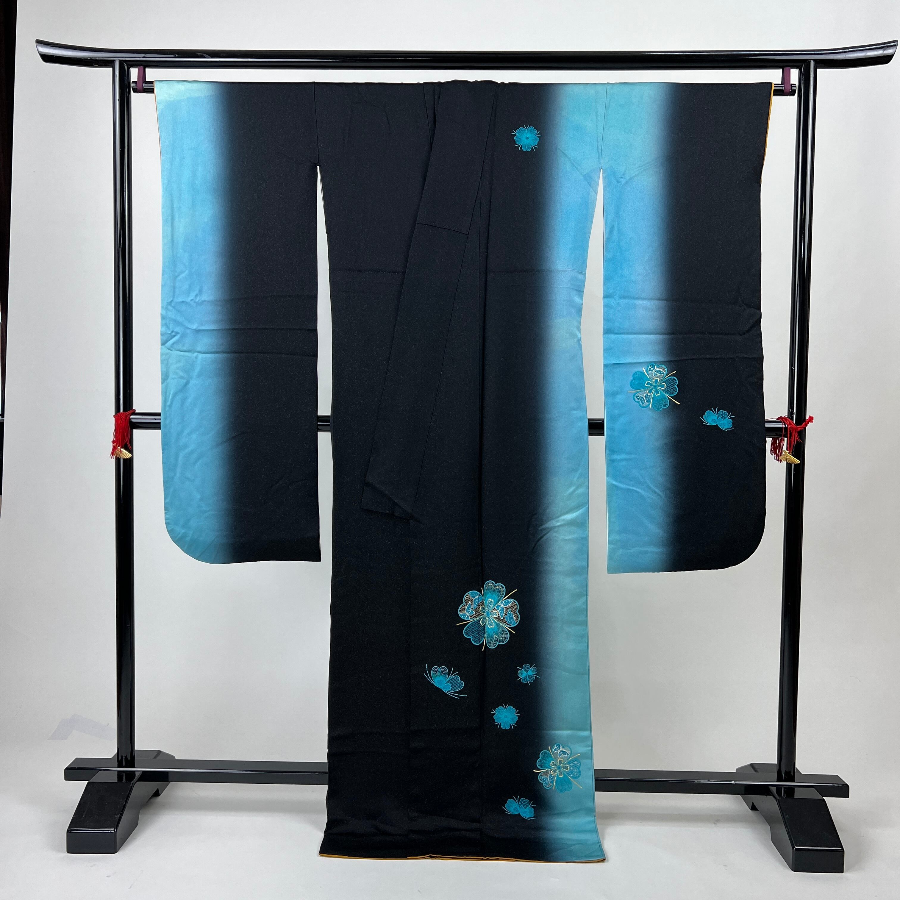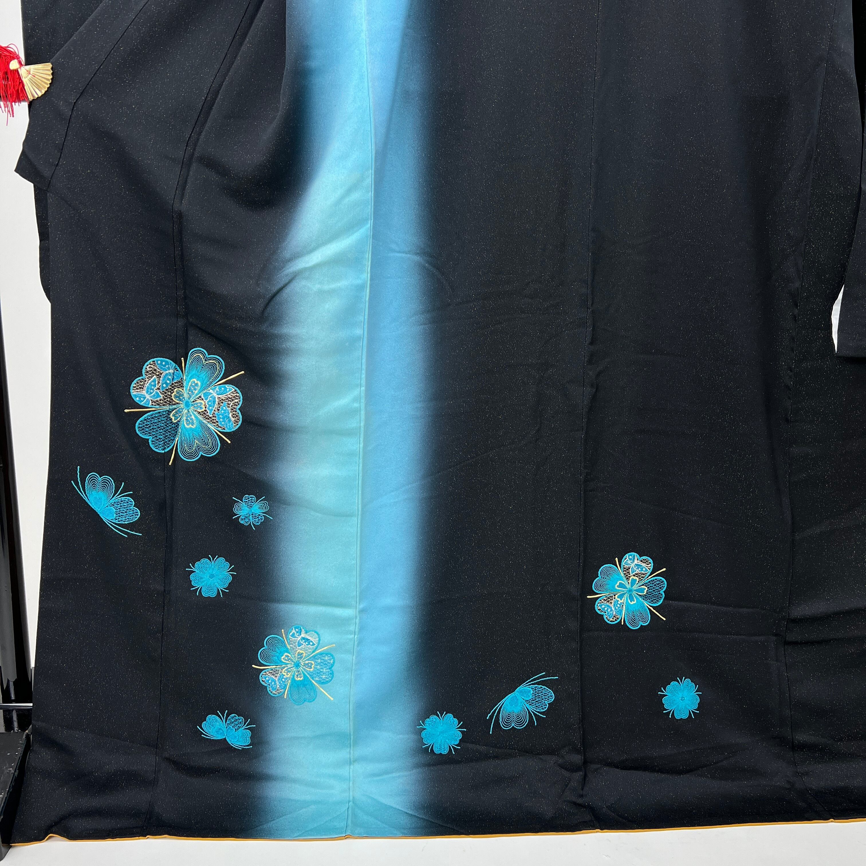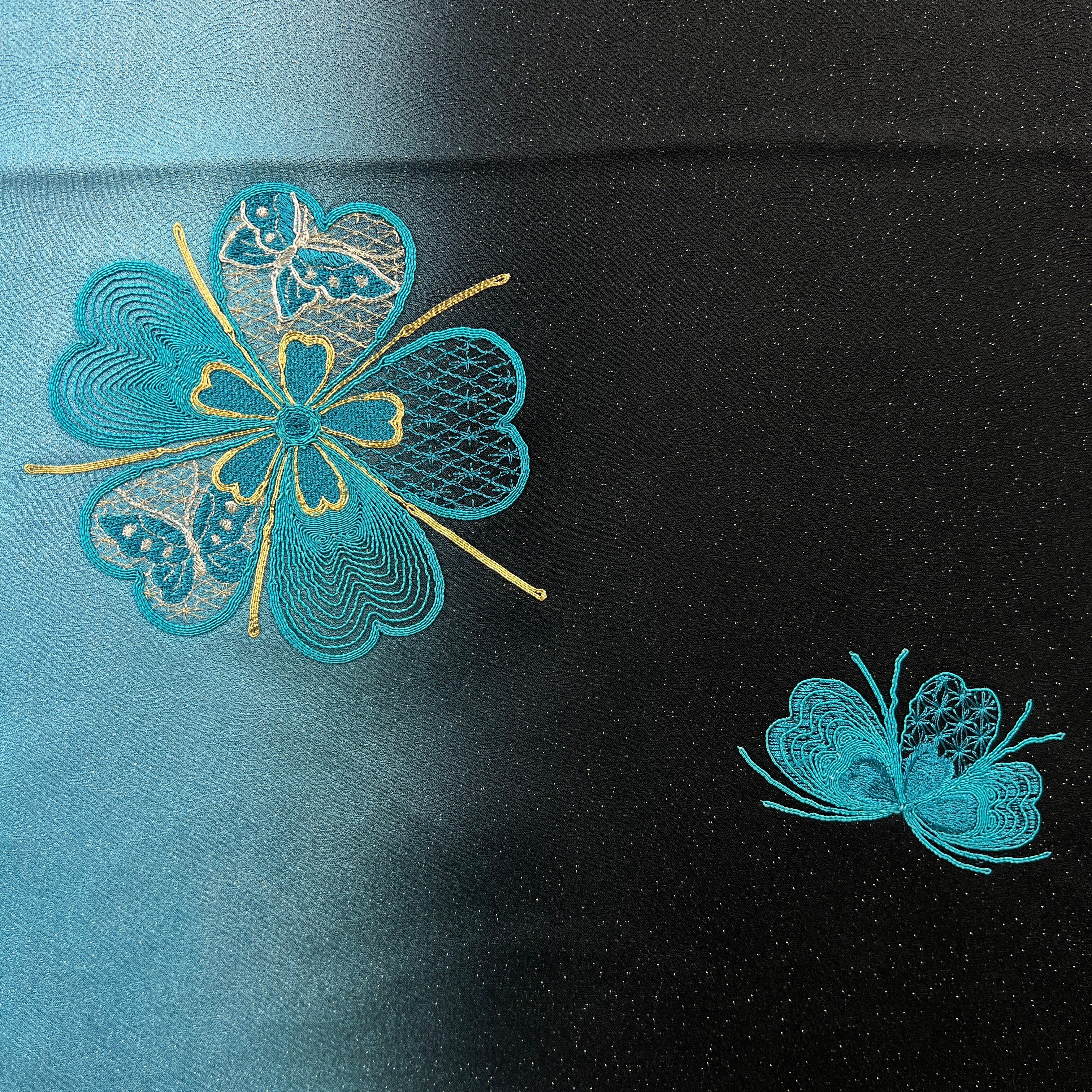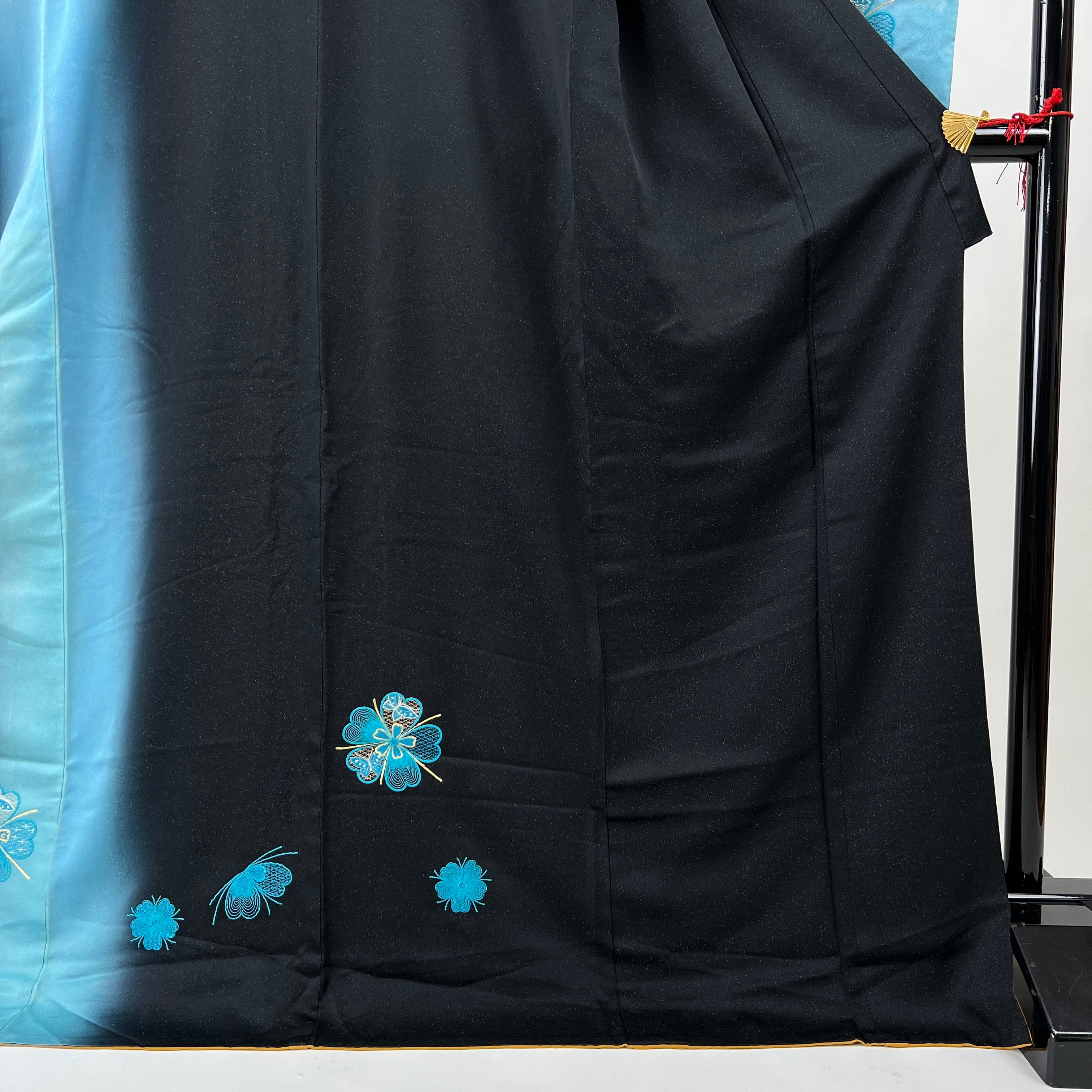 ・正絹 中振袖 振袖 黒と青のラメ織 花刺繍 4S635 HACX908000