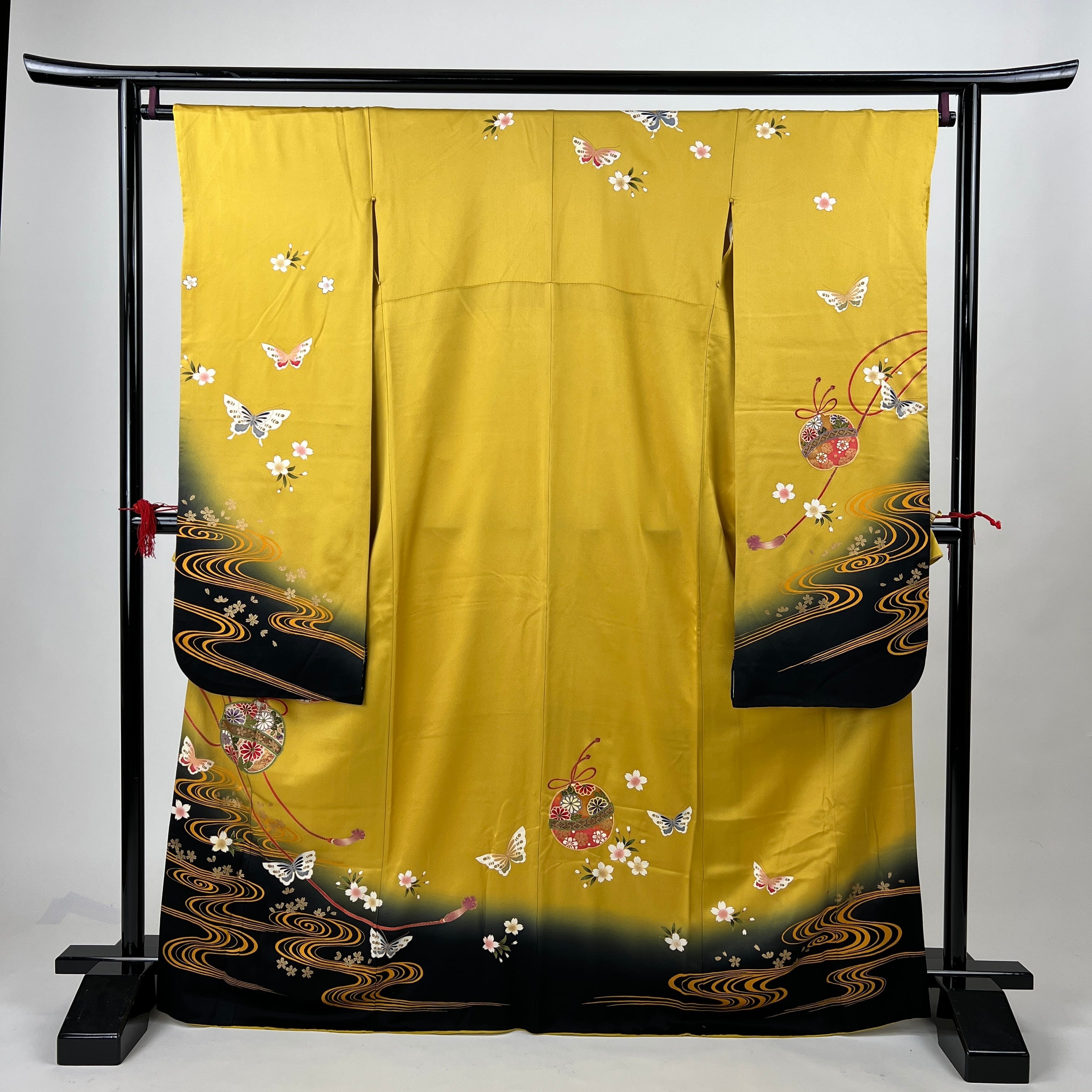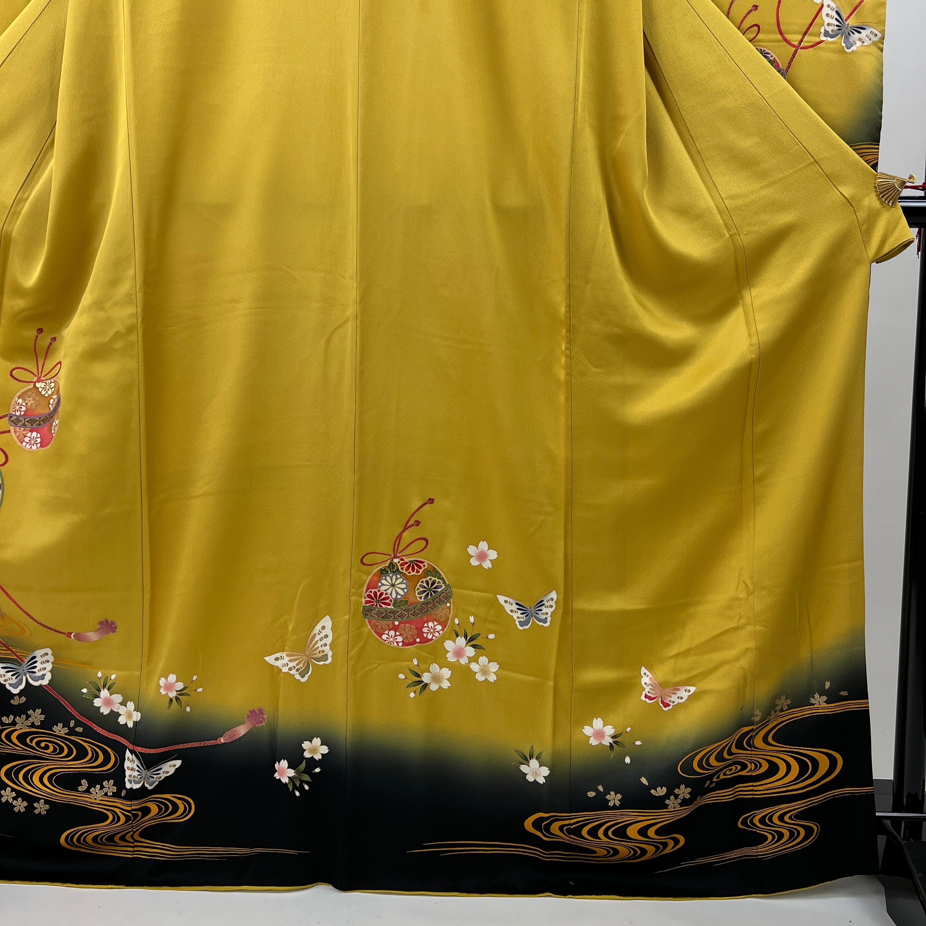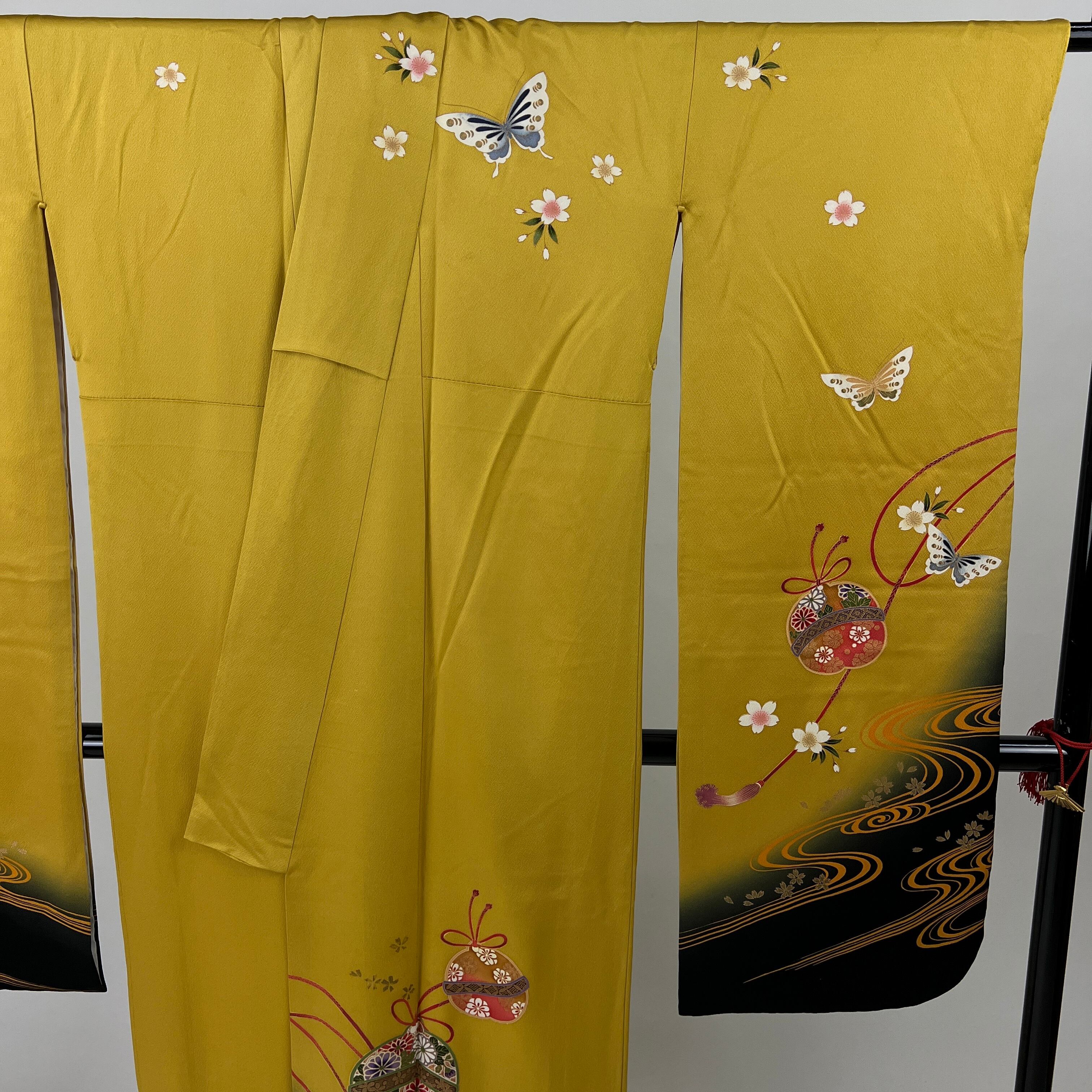 中振袖 振袖 正絹 中古品 からし色 黄色 黄 3S299 HACX647000