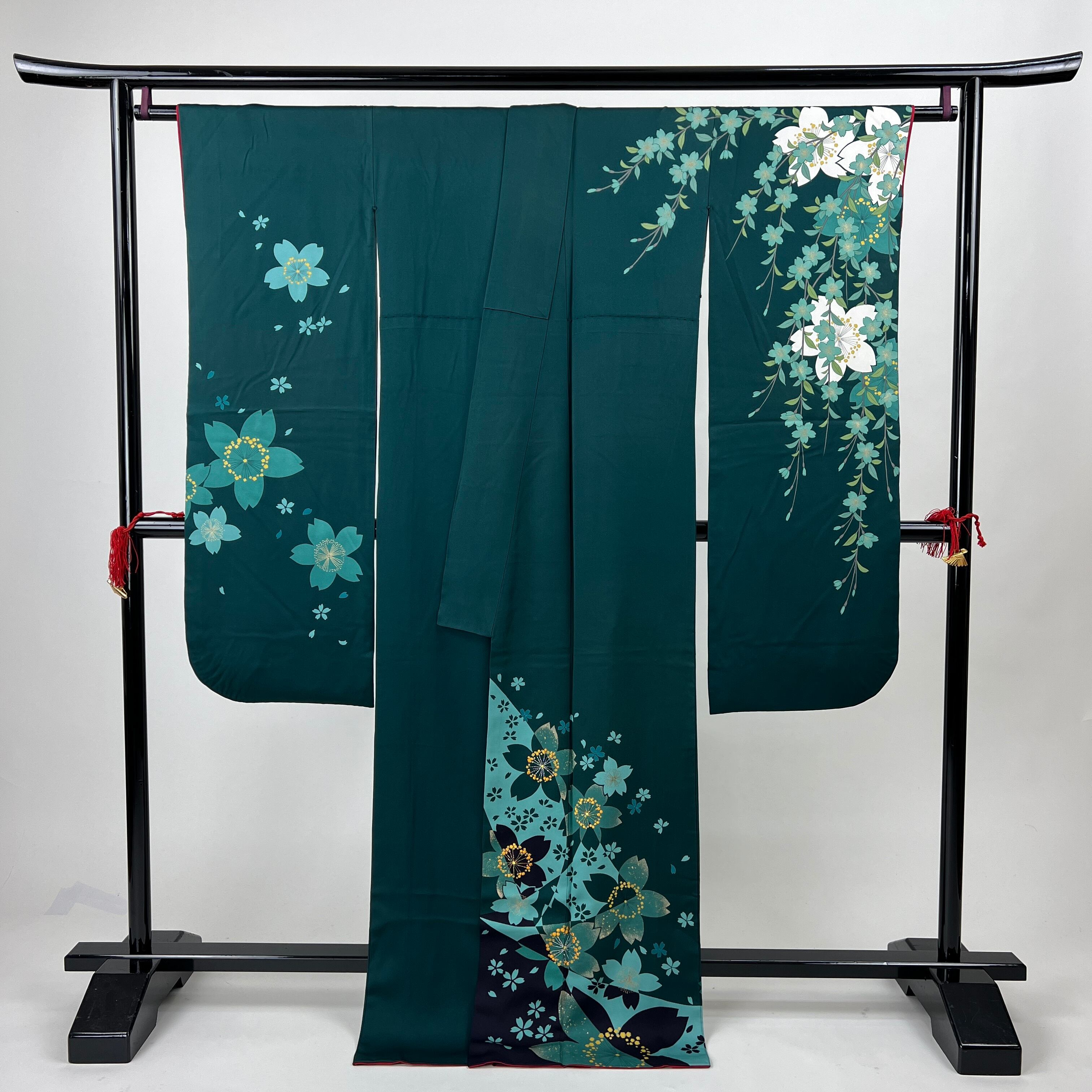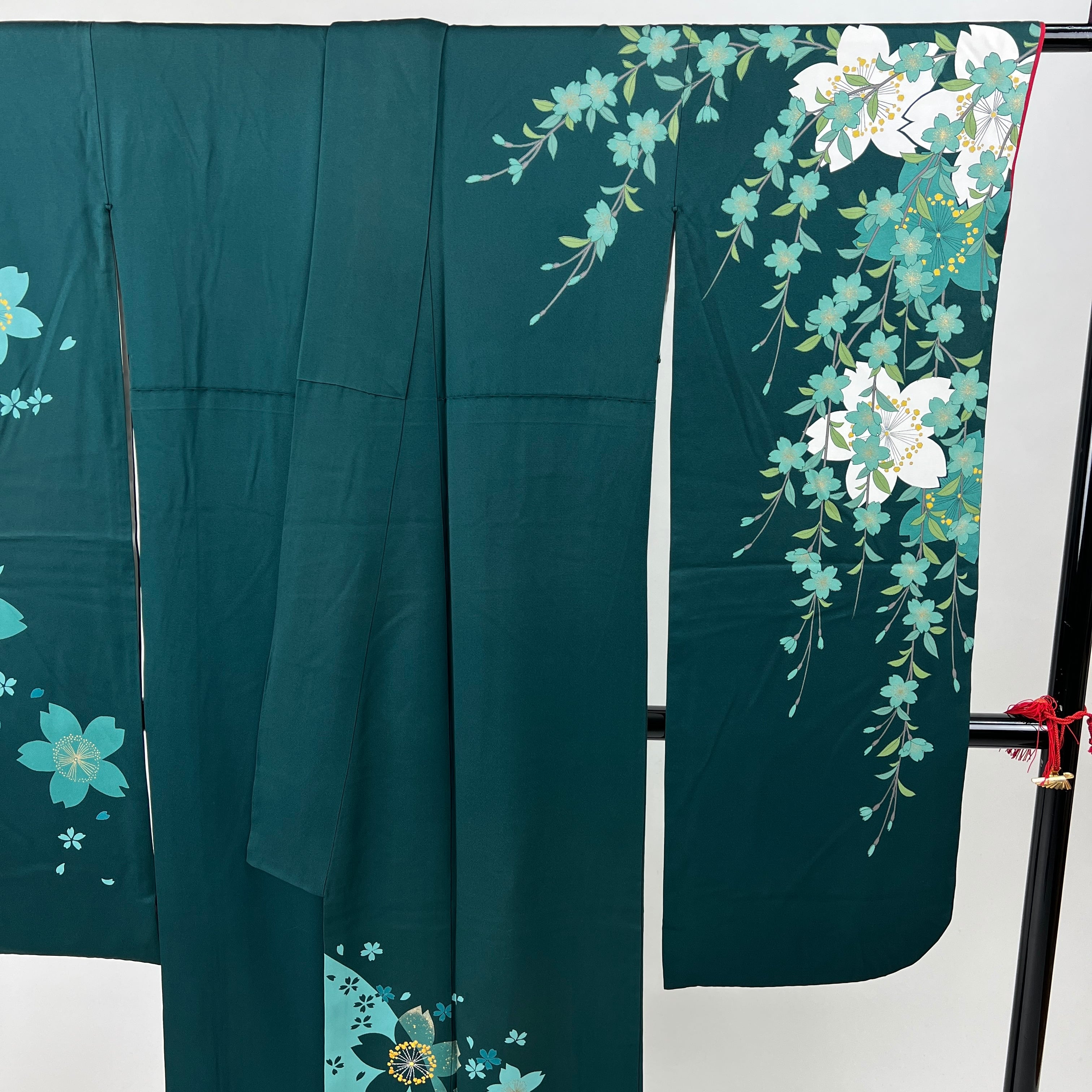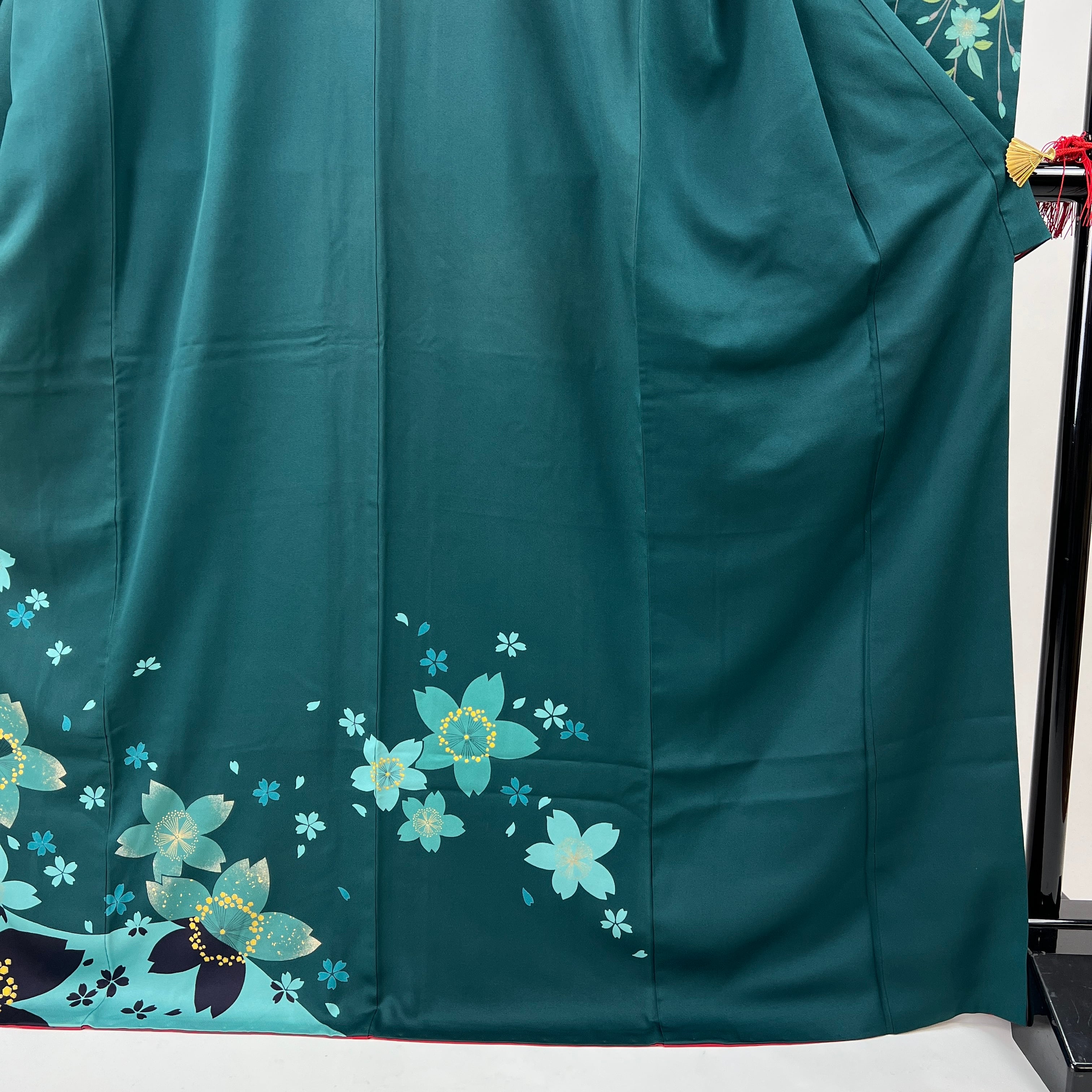 ・正絹 中振袖 振袖 濃グリ-ン地 桜 4S246 HACY801000