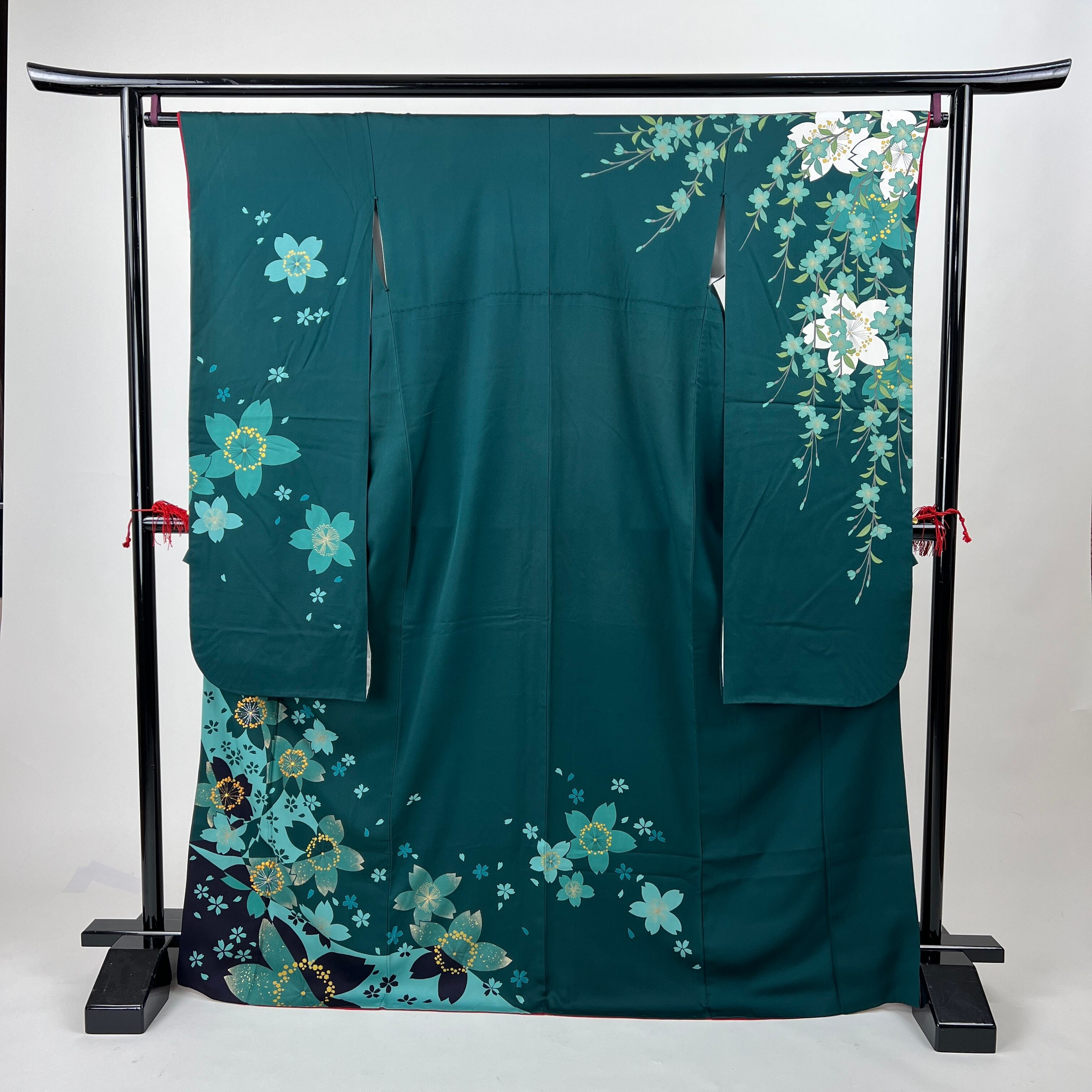 中振袖 振袖 正絹 中古品 緑色 濃い緑 緑 4S246 HACY801000