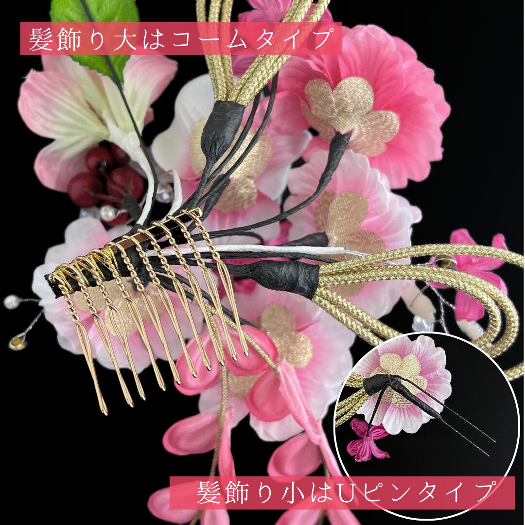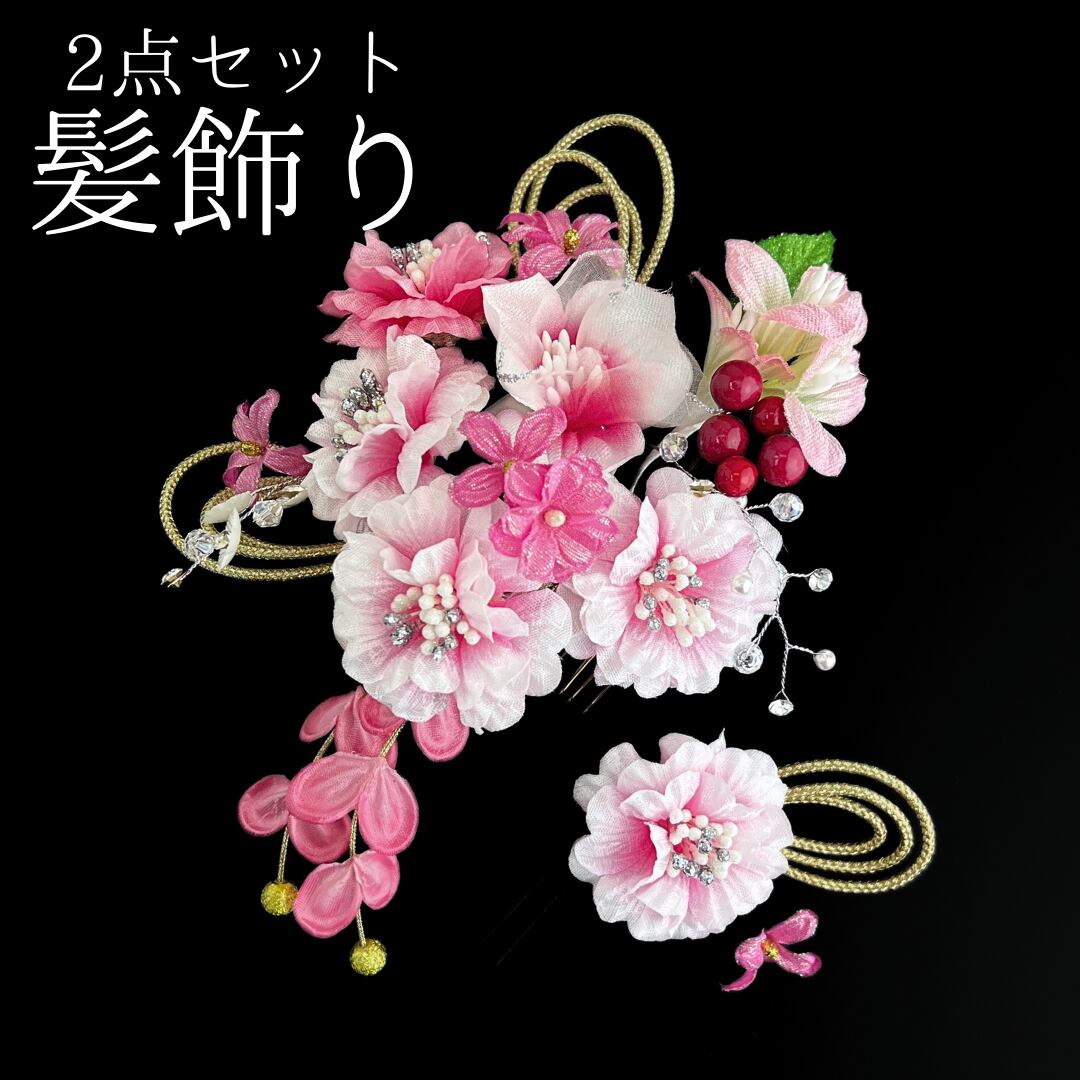 【ピンク 花 髪飾り 2点セット】 成人式 卒業式 結婚式 振袖 袴 訪問着 着物 和装 浴衣 ゆかた ピンク色 花飾り コーム式 Uピン式 髪留め HCJA523