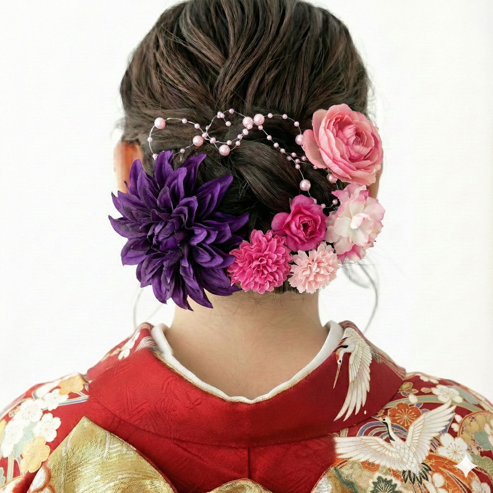 全ての飾りが1本1本に分かれているので、様々なヘアアレンジにお使いいただけます。