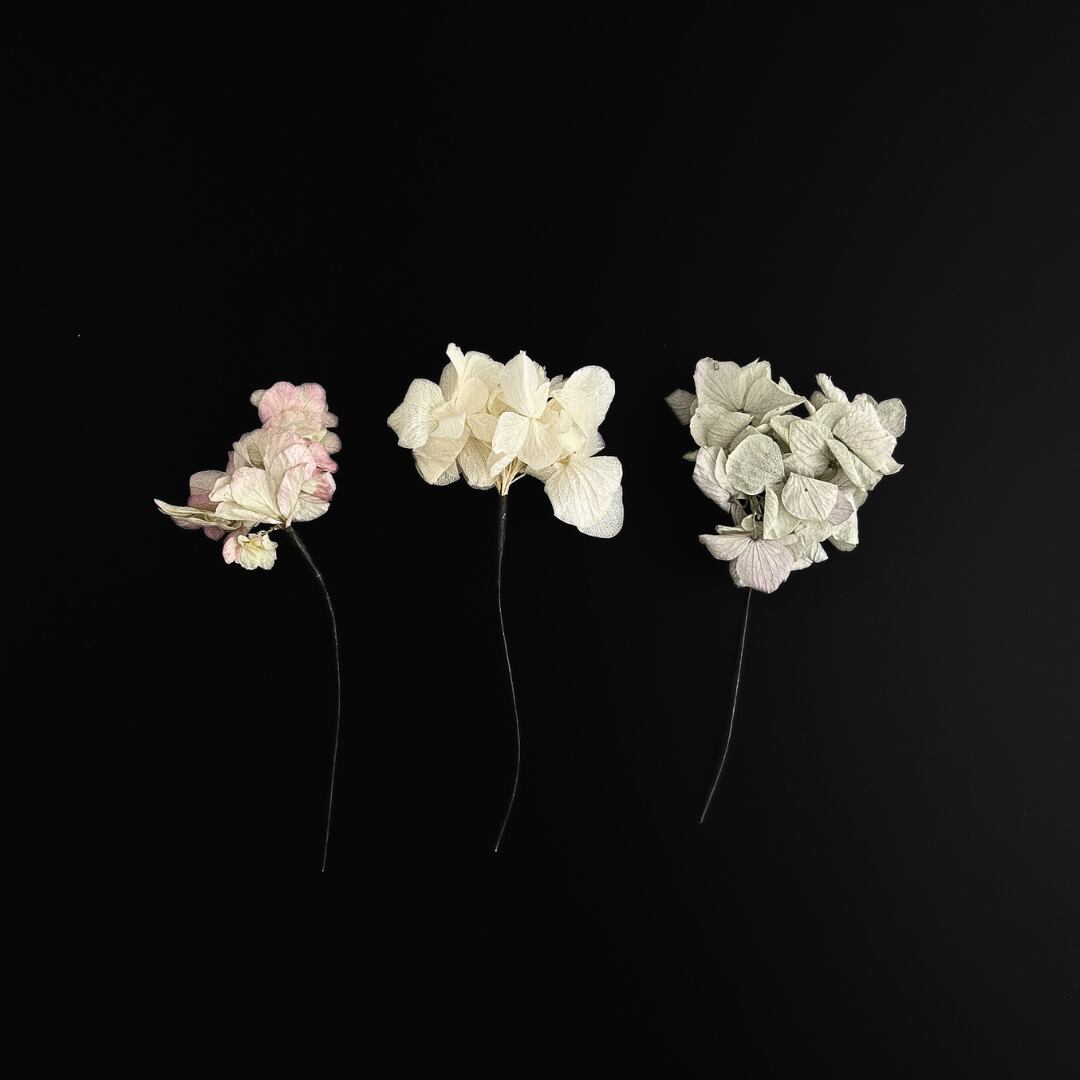 やわらかなアイボリーを基調に、ほんのりくすみピンクを添えた上品な髪飾りセット。