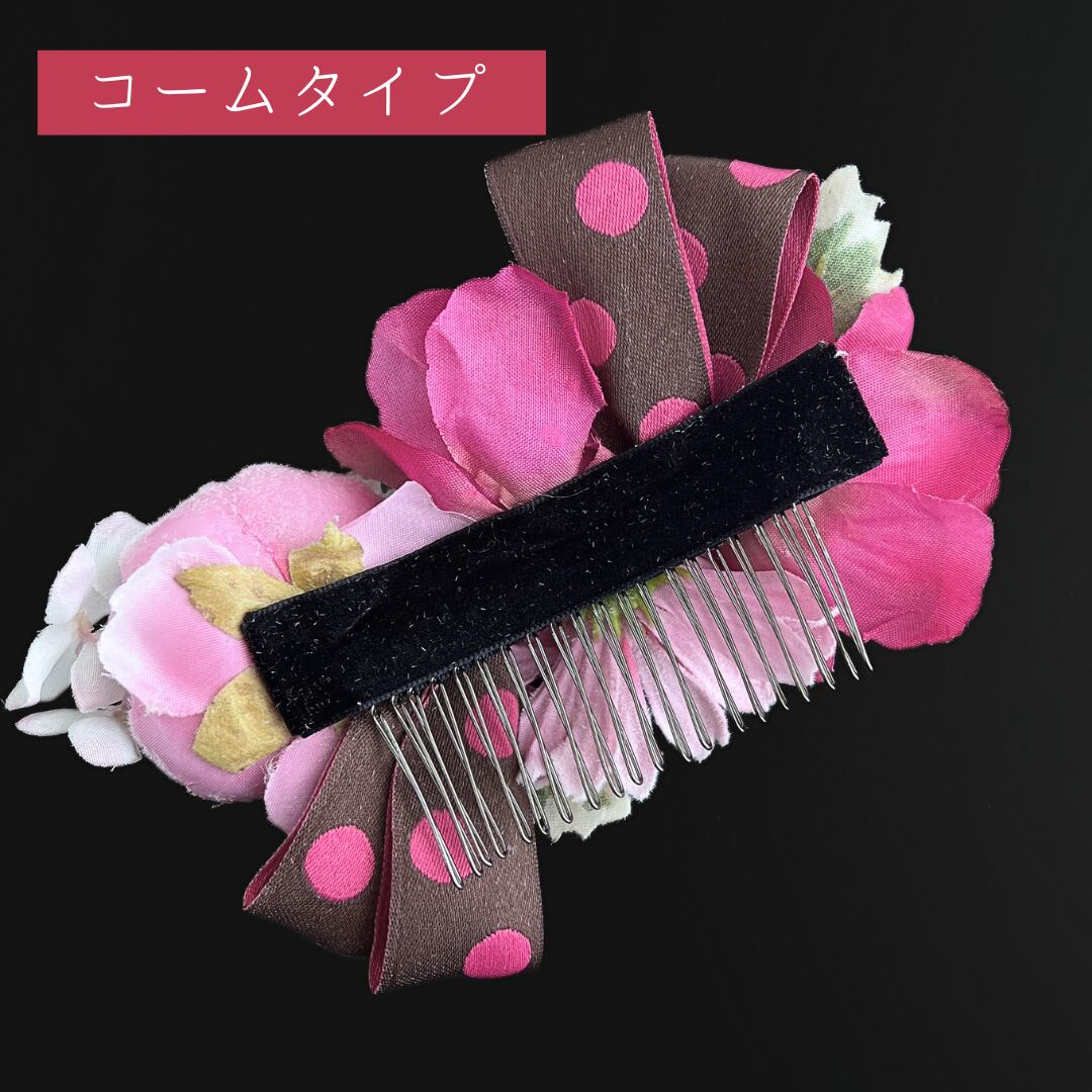 【ピンク 花 髪飾り】 成人式 卒業式 結婚式 振袖 袴 訪問着 着物 和装 浴衣 ゆかた ピンク色 コーム式 リボン 花飾り HCJA532