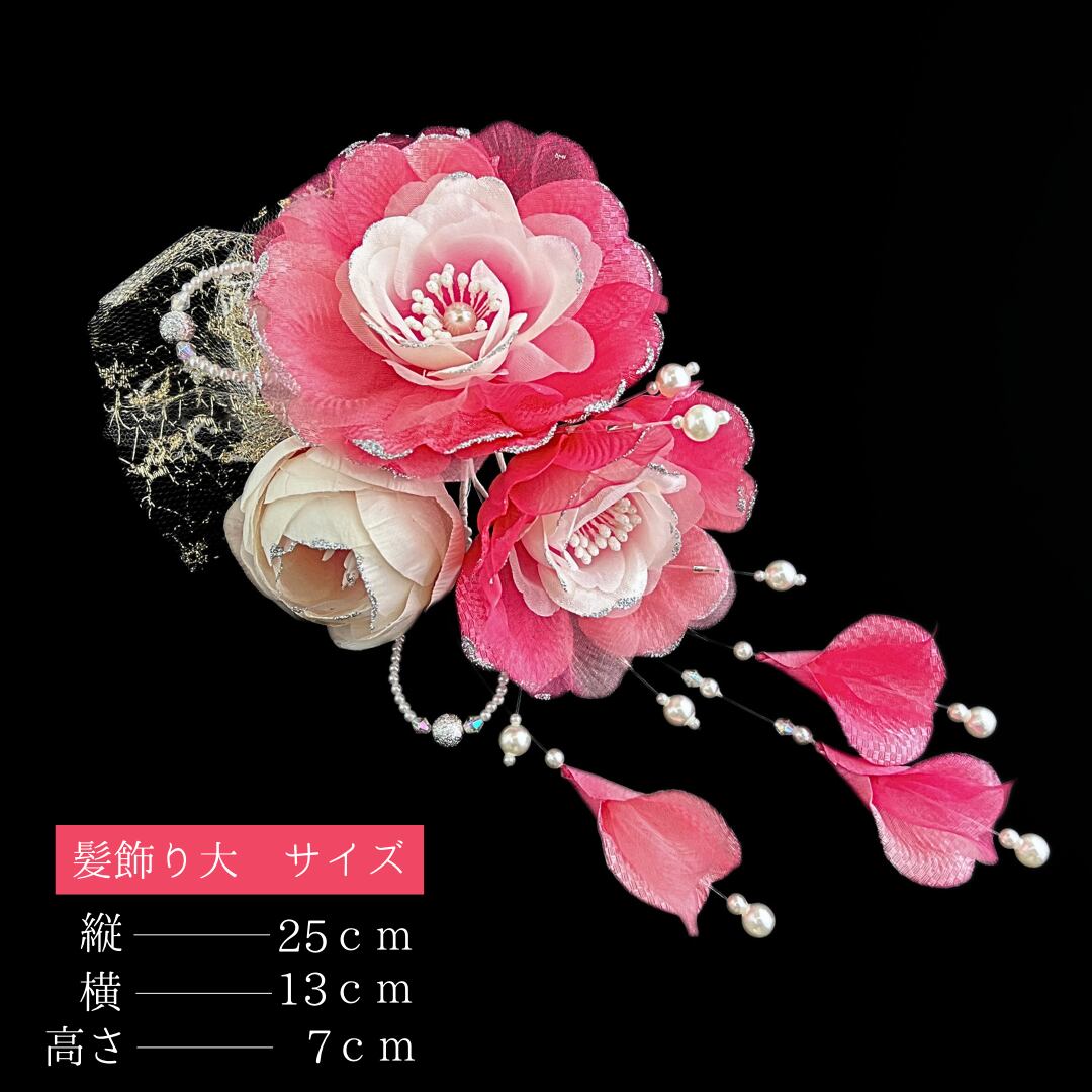 髪飾り小:縦約8cm×横約10cm×高さ約8cm(Uピン仕様)